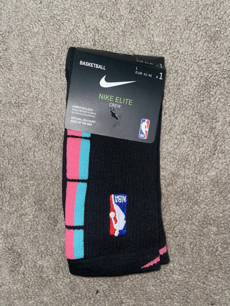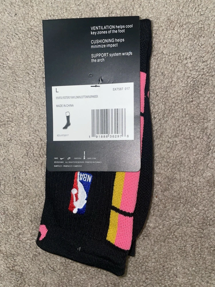 Size Large/8-12 Mens - Nike Elite Dri-Fit NBA Basketball Crew Socks Black/Multi