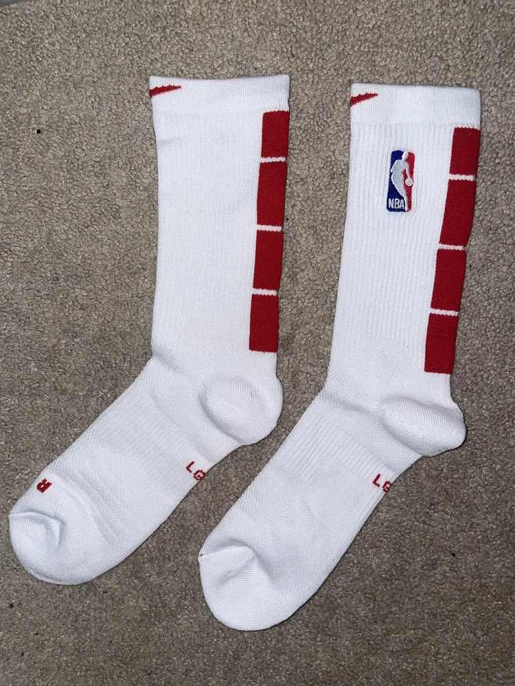 Size Large or 8-12 Mens-Nike Elite Dri-Fit NBA Basketball Crew Socks White/Red