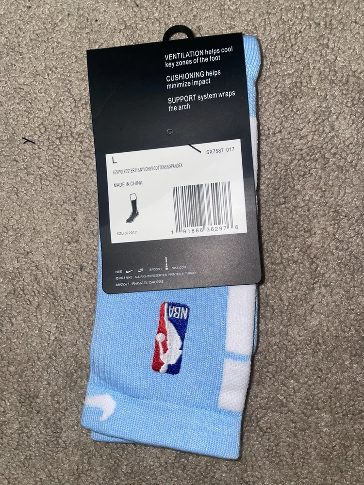 Size Large/8-12m - Nike Elite Dri-Fit NBA Basketball Crew Socks Blue/White
