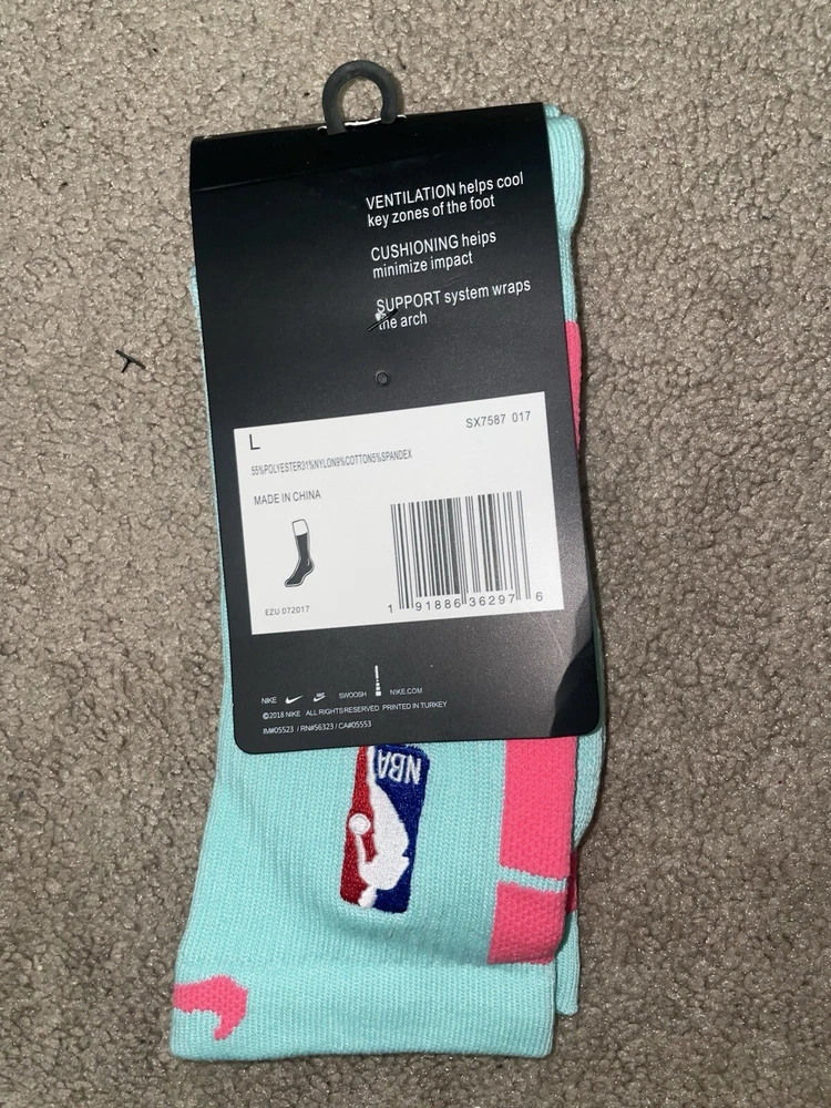 Size Large/8-12m - Nike Elite Dri-Fit NBA Basketball Crew Socks Turquoise/Pink