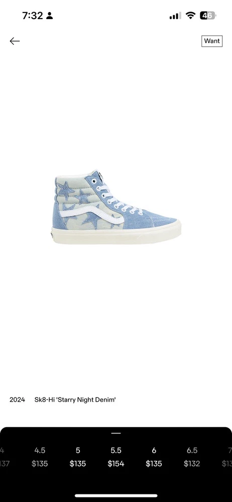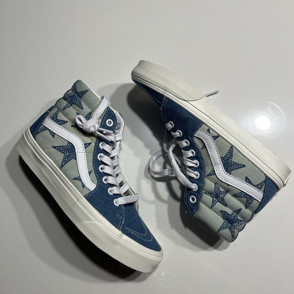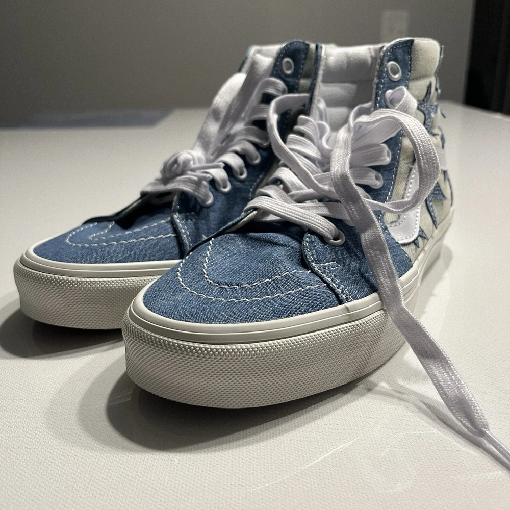 Sk8-Hi “starry Night Denim No box I WILL PACK VERY WELL! It is a size 5.5 in men and size 7 in woman. These shoes are limited addition on the goat app they are going for roughly $150 (see last picture for reference)