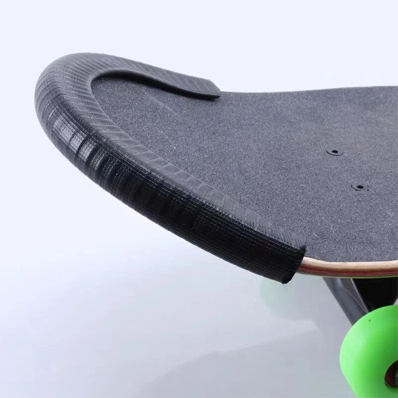 Skateboard Deck Guards Protector, Longboard Edge Protection,Deck Bumper Strip, Durable Shock Absorbing Rubber Cover with Grip Nose Guard and Tail Guard for Kids,Youths,Beginners 2 pack DECK EDGE GUARDS: These specially designed skateboard deck guards protetors offer optimal protection for the edges of your skateboard, effectively preventing wear caused by collisions and falls. With these guards in place, your beloved skateboard will maintain its pristine appearance for an extended period of time. EASY TO INSTALL:The skateboard deck protector is made of high-quality rubber with steel sheets embedded inside, which means it has good plasticity, can be adjusted the shape to the edge of your skateboard for a secure fit. STRONG PROTECTION: The deck bumper stripke protects the longboard edges, nose and tail of your board.Thick rubber and metal protection prevents nicks and chips. WEAR-RESISTANT:The skateboard deck protector features a double-layer structure design with rubber and steel sheets, rendering it highly durable and resistant to wear. This design effectively shields your skateboard from scratches and impacts that may occur during use, allowing you to perform various impressive tricks while ensuring the protection of your beloved skateboard. Universal Size: These deck edge guards have a length of approximately 11.42 inches, making them suitable for skateboards, longboards, and mini cruisers with a deck thickness of less than 0.5 inches. Each package contains two deck guard strips.