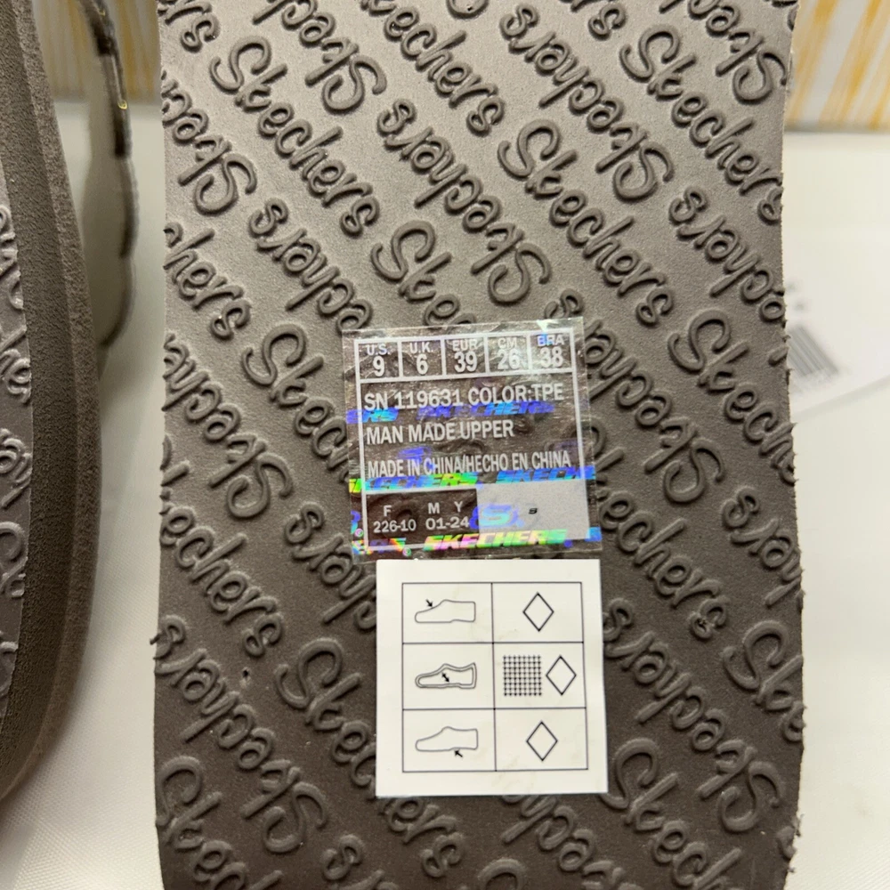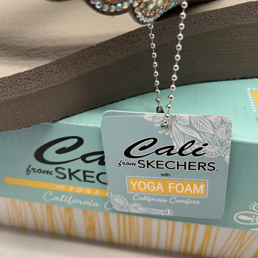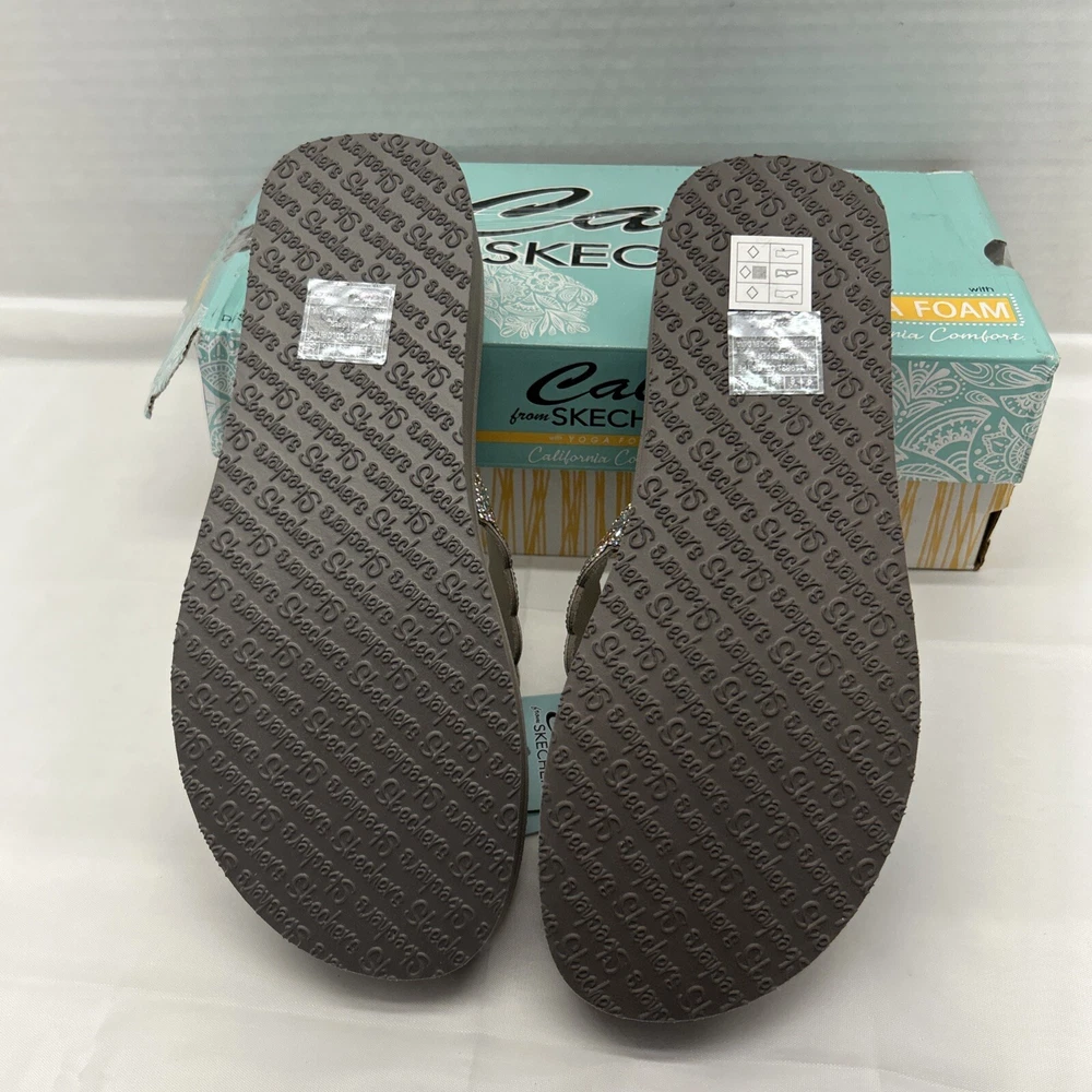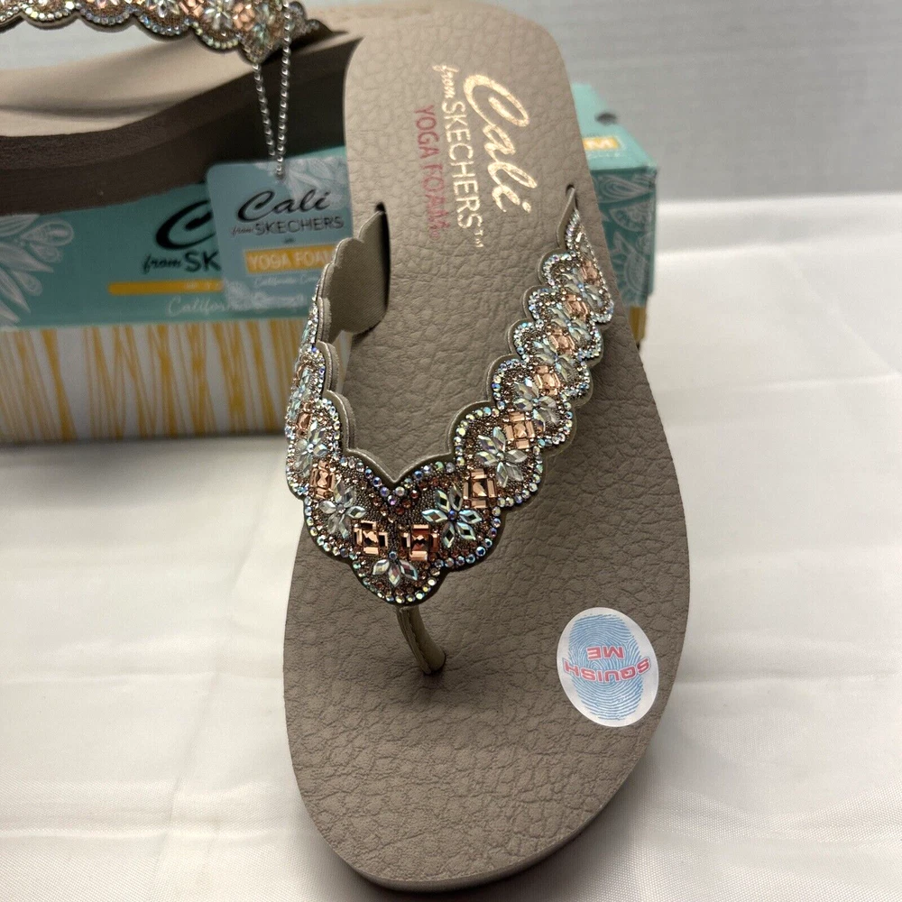 Skechers Cali Vegan Yoga Foam Sandals Happy Spring Taupe/Beaded Womens SZ 9 New in Box (Box has Damage)