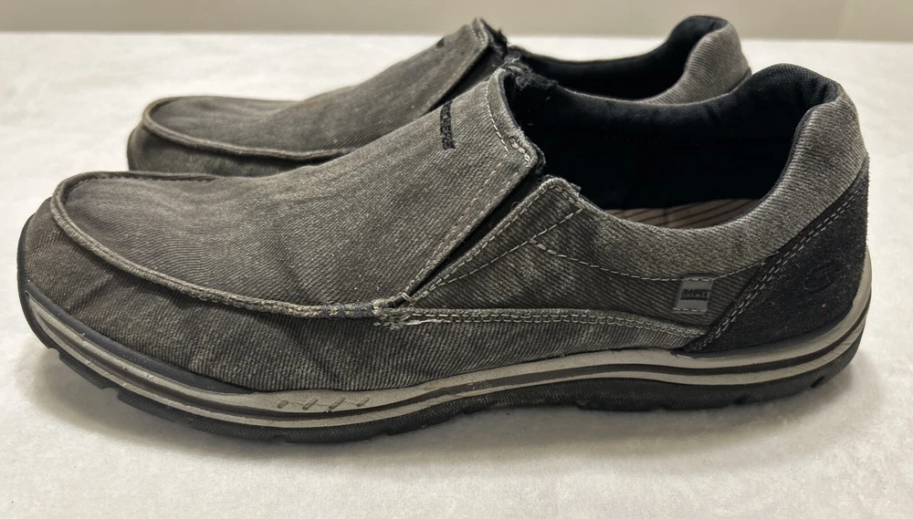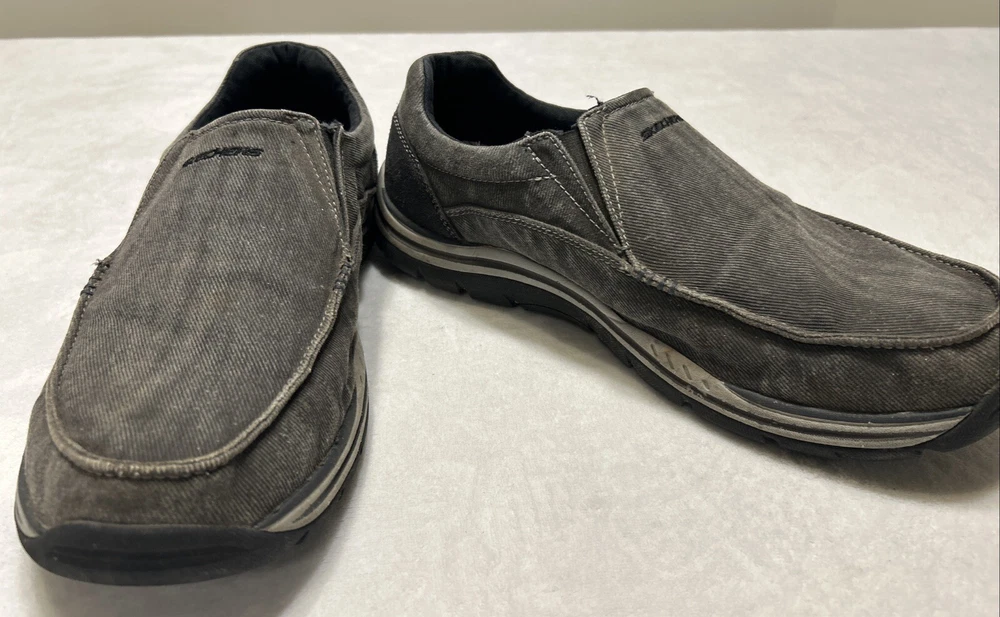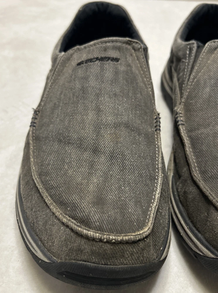 Skechers Mens Shoes Size 11.5 Gray Wide Relaxed Fit Memory Foam Slip On 64109EW