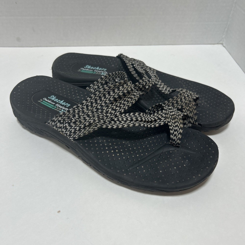 Skechers Outdoor Lifestyle Womens Comfort Casual Slip-On Sandals 7 Black White