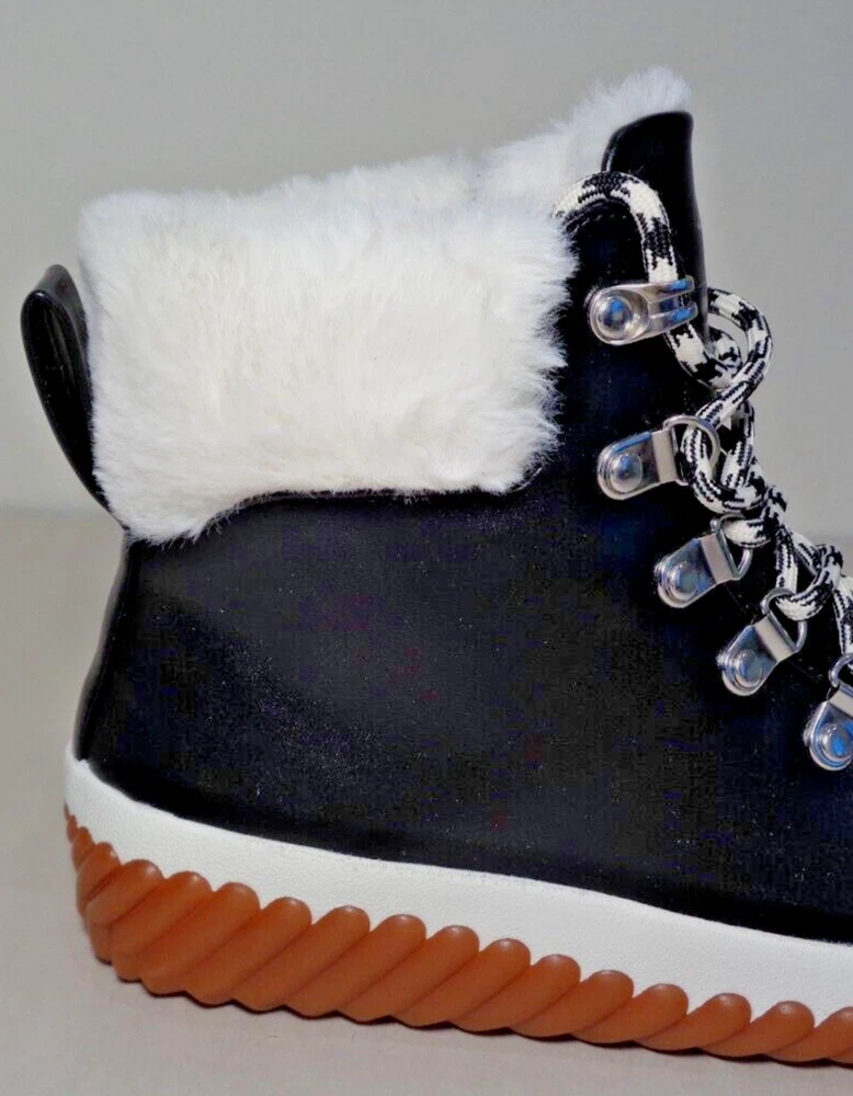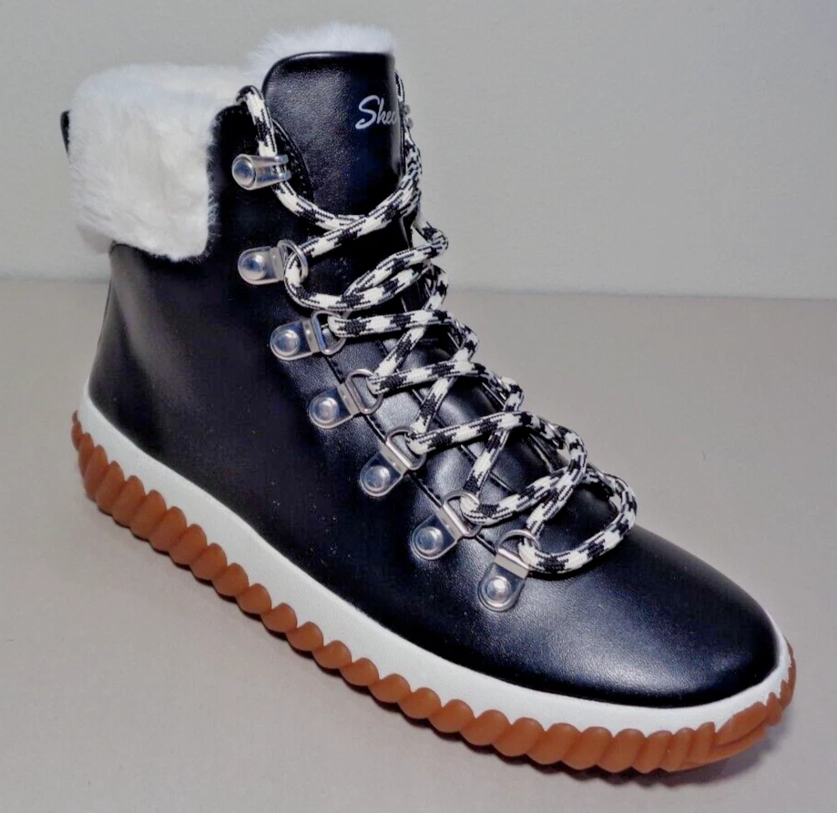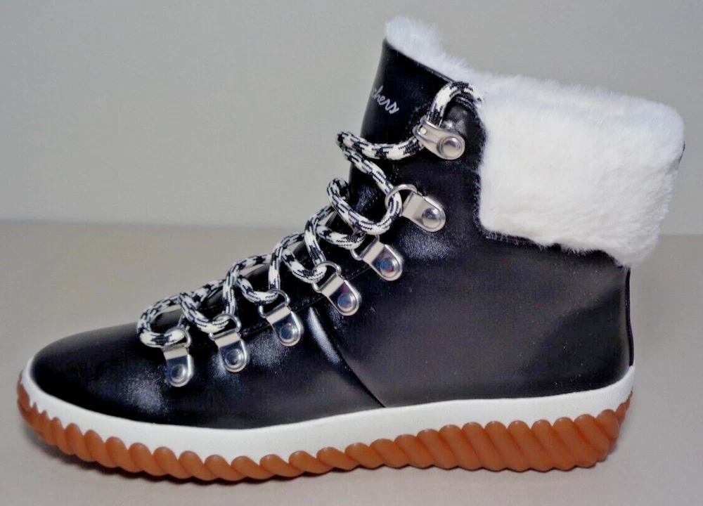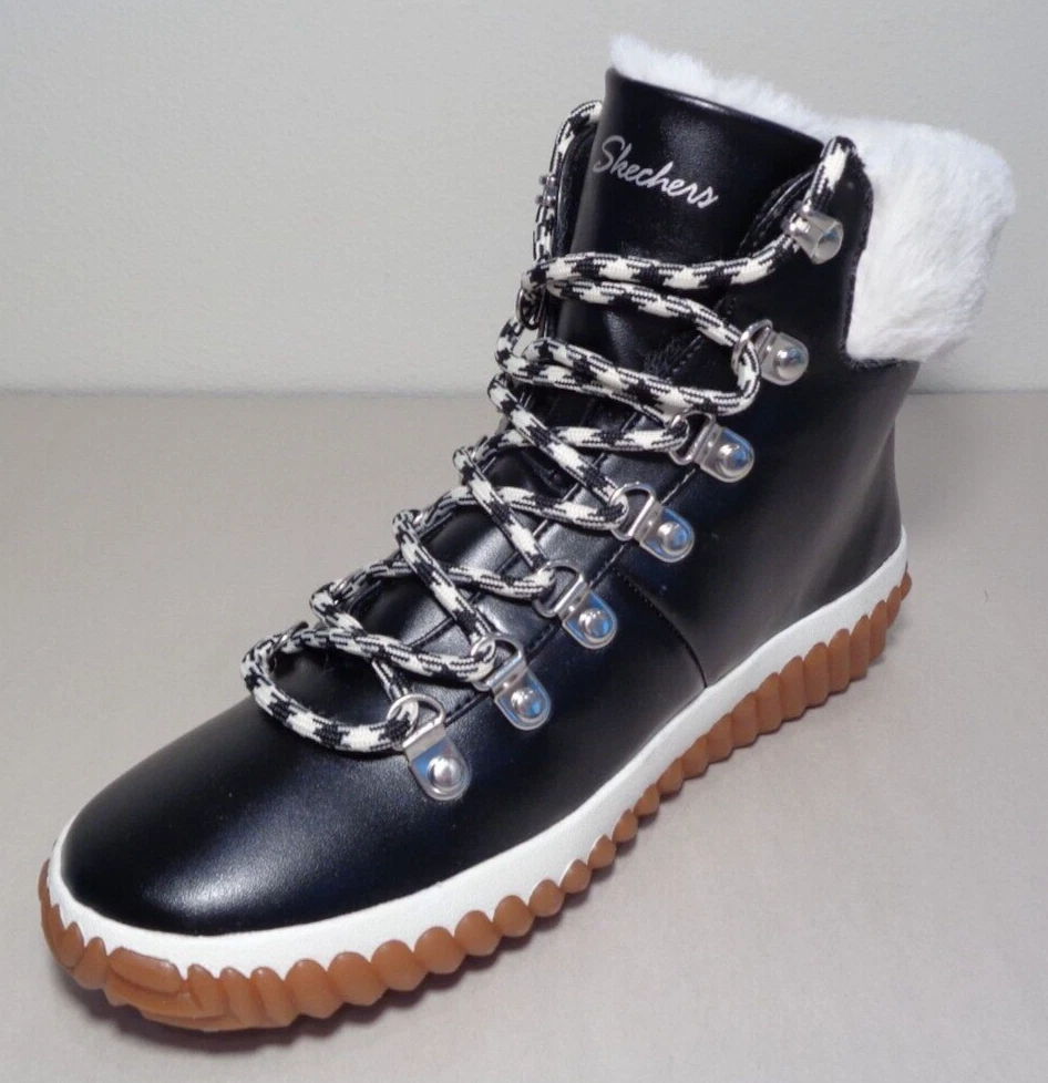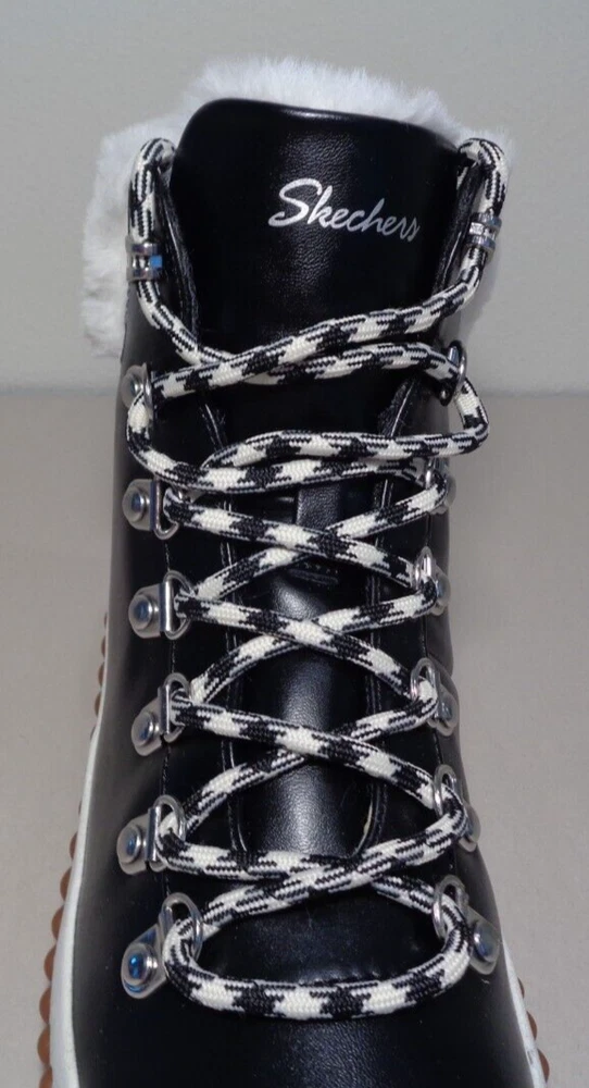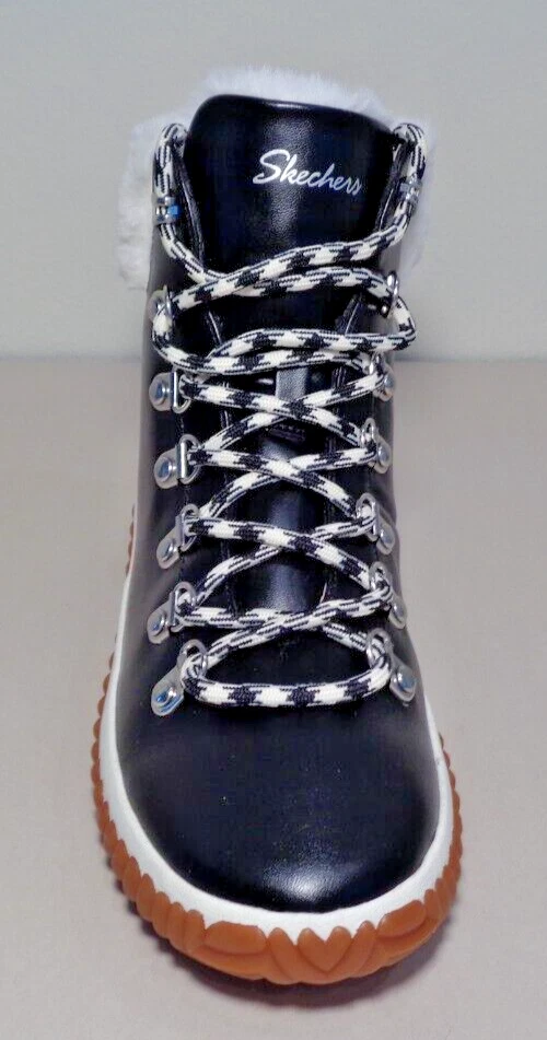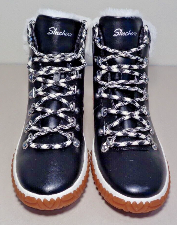 Skechers Size 6 M JAGGED POND NO REGRETS Black Boots New Women's Shoes New with box Style: JAGGED POND-NO REGRETS, 167334/BLK Color: Black - Stay cozy all s eason long in the SKECHERS JAGGED POND - NO REGRETS -Sneaker Duck Style Ankle Boot - Traditional lace-up closure offers a secure fit -Classic round toe silhouette -Textile and synthetic upper -Faux fur trim and lining -Textile lining and insole -Memory Foam insole provides incredible all-day comfort and support -Rear pull tab in back for easy on and off -Synthetic and leather outsole -Top to bottom(measured at heel) 5.75 inches -Heel height 1 inch -Weight per boot 12 oz -Eur 36 / UK 3 / CM 23 / BRA 35