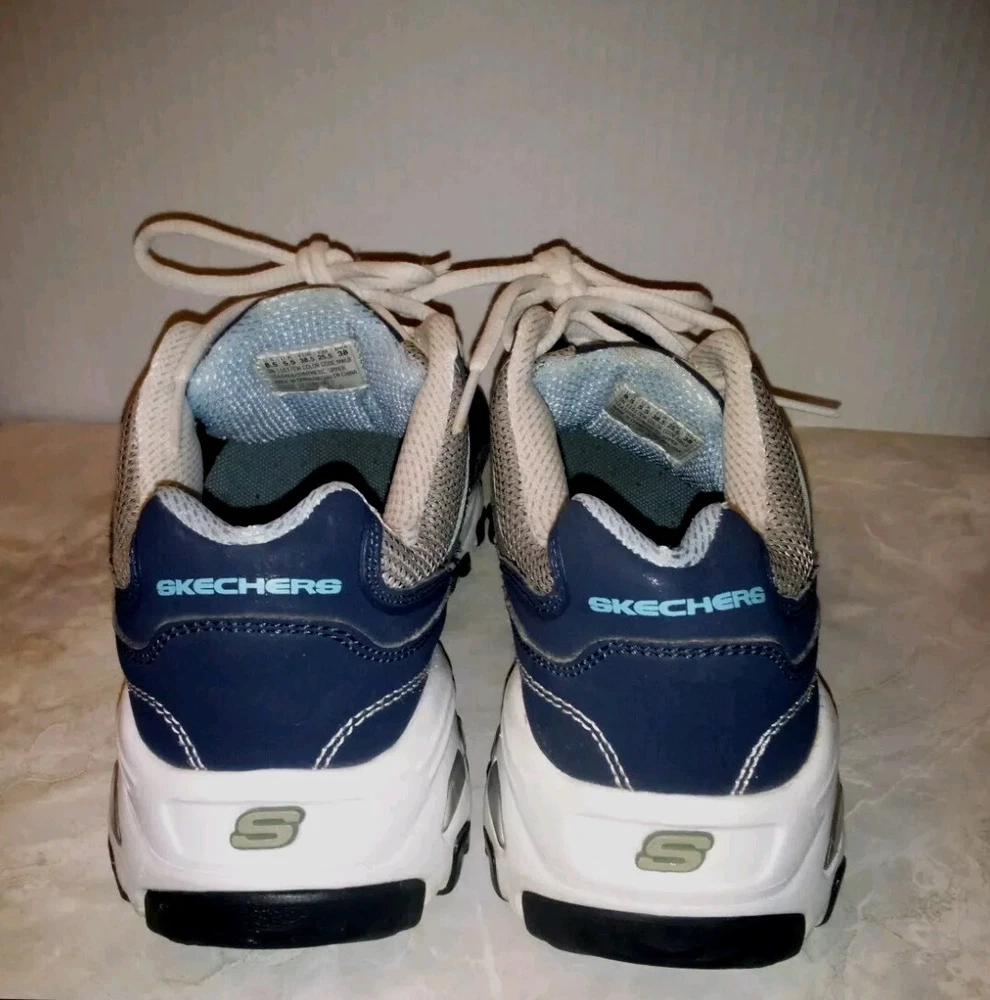Elevate your sneaker game with these navy blue Skechers D'Lites Life Saver Memory Foam sneakers. The lace-up closure provides a comfortable fit while the rubber outsole offers durable wear. The blended fabric lining and insole ensure breathability and comfort, perfect for all-season wear. These low-top sneakers are ideal for a variety of occasions, from activewear to casual. The solid pattern and subtle logo accents add a touch of style to these functional shoes. With a UK shoe size of 5.5 and EU shoe size of 38.5, these sneakers are a great fit for women's US shoe size 8.5. The Skechers D'Lites Life Saver Memory Foam sneakers are a versatile addition to any wardrobe, suitable for gym training, running, jogging, and more.