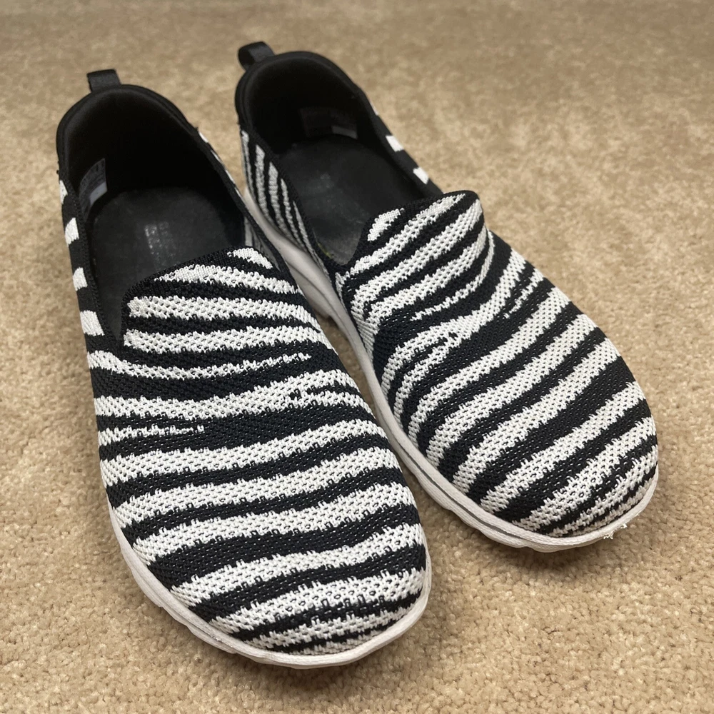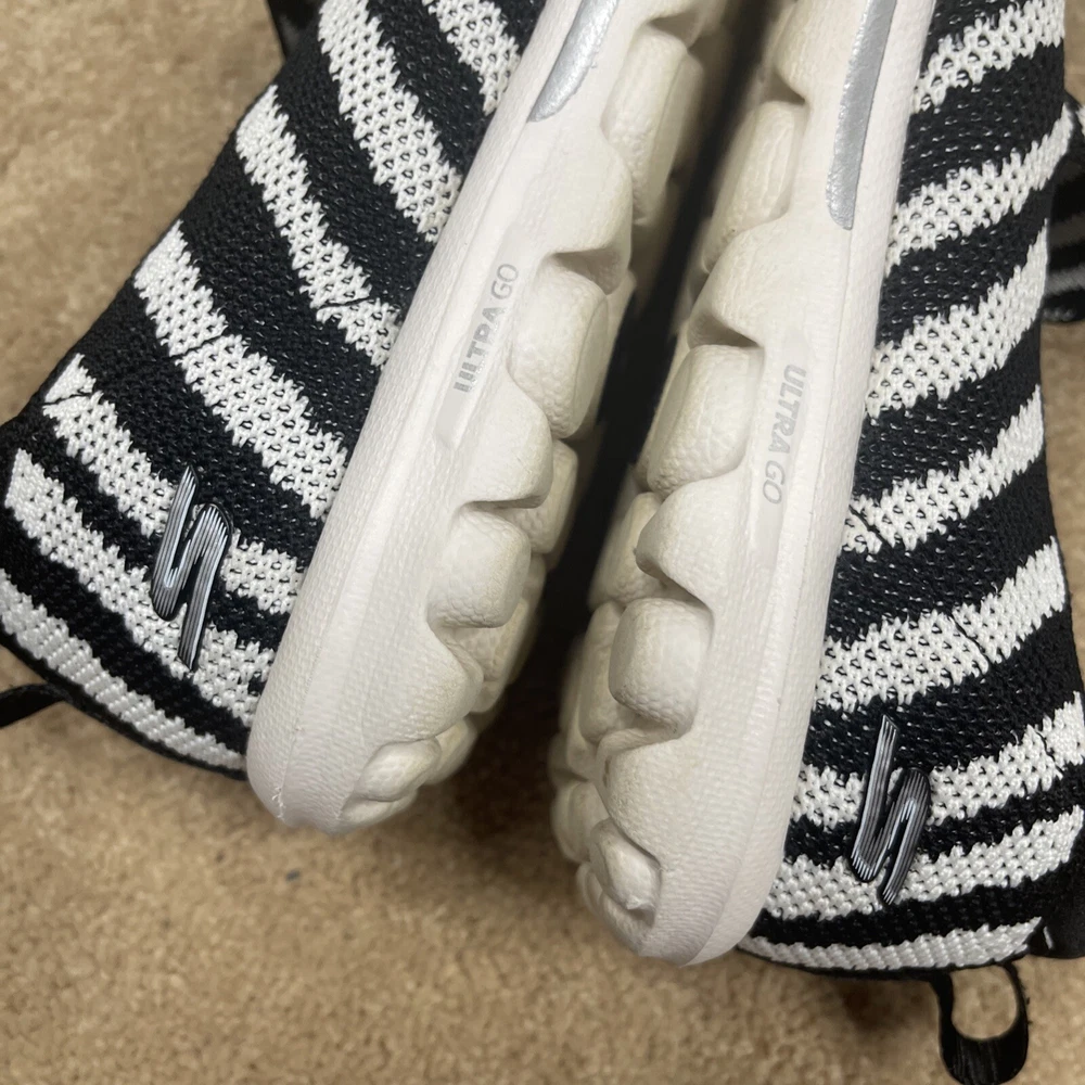 Skechers Ultra Go Walk Women 6.5 Zebra Black White Performance Comfort Slip On
