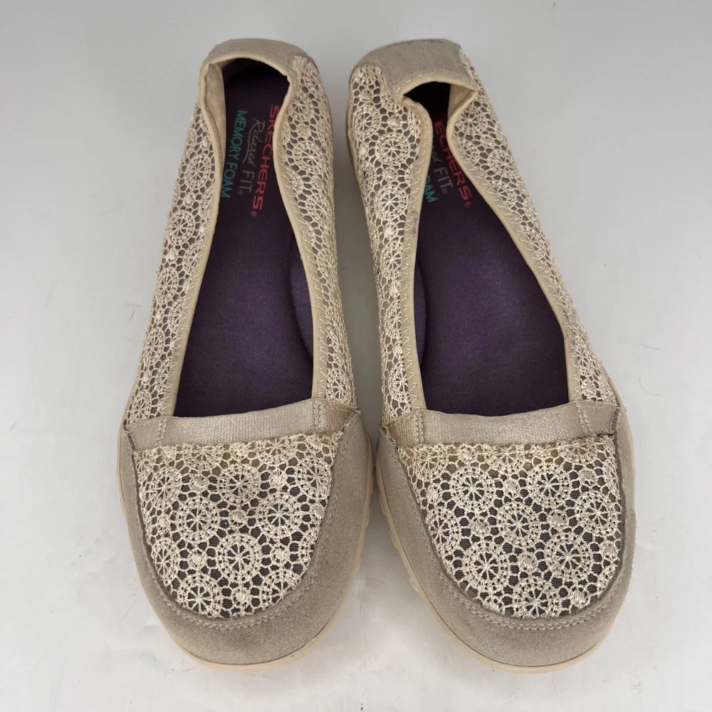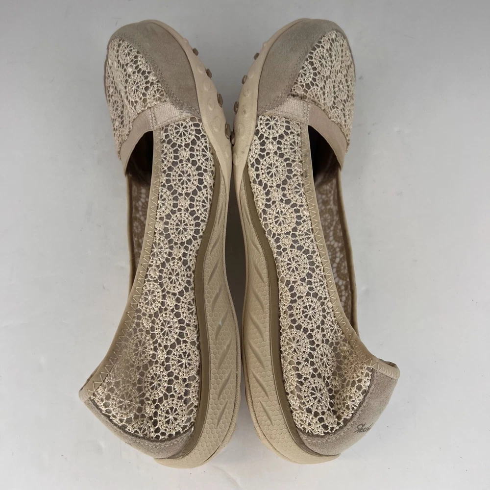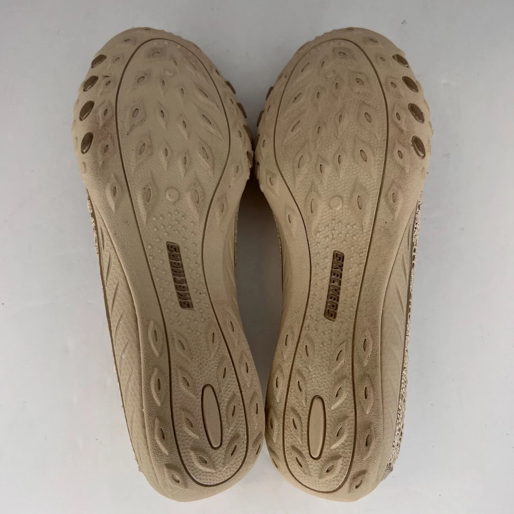 Elevate your style with these Skechers Breathe Easy slip-on shoes in a beautiful beige color. These shoes feature a round toe shape and a low top shoe shaft style. The upper material is made of mesh, while the lining material is made of fabric. The shoes have a standard shoe width and a foam insole material. These shoes are perfect for any season, whether it's winter, summer, fall, or spring. The outsole material is made of rubber, providing a durable and comfortable grip. The shoes are adorned with a Skechers logo accent, adding a touch of hipster, grunge, mom, classic, casual comfort, and preppy vibe to your outfit. These shoes are a must-have for any women's shoe collection. 100% CUSTOMER SATISFACTION IS OUR GOAL! Our items are always carefully examined for condition, measured if necessary, and photographed in a climate controlled and smoke-free environment. We make every attempt to accurately describe and clearly picture the items we have for sale. Please, ALWAYS view all of the photos. We value your business and our goal is your complete satisfaction. FAST SHIPPING All items are packaged with care and shipped out the same or next business day via USPS, FEDEX, or UPS with tracking numbers so you are always informed. RETURNS We offer a 30-day return policy. All items must be unused and unopened in the condition in which they were received, with original packaging, and all accessories included for return. REVIEWS - CUSTOMER SATISFACTION - COMMUNICATION We aim to make you happy. After you receive your shipment, please leave a positive review . If you have concerns or questions about your order, please contact us so we can resolve the issue. We will do our best to make you satisfied. THANK YOU FOR YOUR BUSINESS!