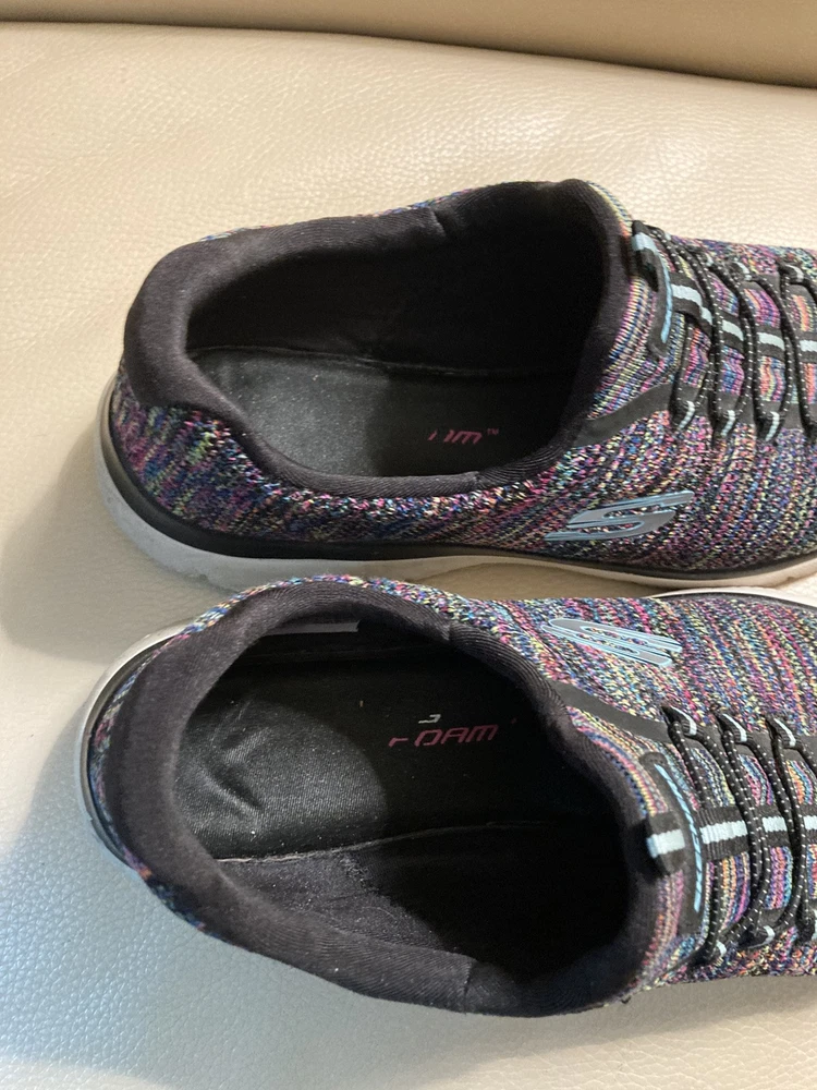 Skechers Women’s Memory Foam Size 11 Black Multi Color Slip Ons