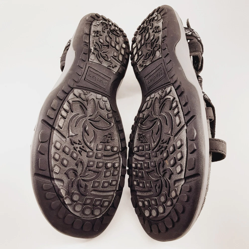 WE APPRECIATE OUR CUSTOMERS THANK YOU FOR SHOPPING WITH US!! Skechers Womens Sandals US 11 Reggae Slim Vacay Strappy Mem Foam Black Gray Elevate your style with these Skechers Reggae sandals in black and gray. The slip-on strappy design is perfect for any occasion, whether you're running errands or going out with friends. The memory foam insole provides ultimate comfort, while the synthetic upper material ensures durability. These sandals are perfect for women who want to add a touch of sophistication to their wardrobe. The geometric pattern adds a unique touch to the overall design, and the Skechers brand name guarantees quality. Get ready to step out in style with these Skechers Reggae sandals. *Please look at pictures as they are part of the description/details. *Good Preowned Condition *Thanks for looking! Please remember items listed as vintage or used will typically show age appropriate wear. I have provided lots of photos for you to see the general condition of each item. If you would like any further photos or information, please contact me and I will be happy to try and help. I do my best to describe items accurately. Pictures are considered part of the description. Cameras and/or computers can sometimes slightly alter colors. Any measurements should be considered approximate. If you need an exact measurement, please ask. Terms and Conditions : Once a purchase has been made, it is legally binding contract. Payments: Payment is due when purchase is made, Thank you for your prompt payment. *If payment is not received within 4 days of purchase, then a Non-Paying Buyer Dispute will be filed, and eBay may mark it against your account. SHIPPING: We ship daily (Mon-Fri not to include holidays) and will ship within two business day of receiving payment! I do accept returns if you are unhappy with your item for any reason. I ask that it be returned in the original condition you received it in. I take pride in shipping items carefully. However, if an item arrives damaged, please contact me immediately. All shipping materials (box, poly bag, bubble wrap, paper, etc.) must be kept, as well as it is necessary to take 7 pictures to document exterior damage of the box, as well as the interior damage of the item(s) that was purchased. This documentation is required to file a damage claim with both USPS and UPS. Upon Receiving : If you are satisfied with your product(s), please leave some positive feedback. *We love hearing that you have received your purchase(s), and are content, delighted, and untroubled. *Once you receive your purchase(s), please inspect them for any damage during transit. Report any damage within 24hrs via eBay e-mail. Return Policy : You may return unworn, unwashed merchandise in its original condition with all tags attached. If you bought a brand-new item, it MUST be returned brand new (Sealed and Any returns MUST be sent back to us complete and in the same condition as delivered to you Unopened). Items must be in new or original condition (free of odor, markings etc.) and ready for resale. Any serial or product numbers must match the purchased item for refund. PLEASE NOTE that shipping will not be refunded . Upon time of purchase, you are agreeing to this return policy. CHECKOUT: Please make sure that your address on file with eBay is complete and correct as we must use the address you have with eBay. *If you have any questions about your purchase, delivery, or a possible product return; Please contact us immediately and directly through your eBay accounts message center! *We are Eco-Friendly, leaving the lightest possible impact on our environment! Whenever possible we will reuse packing material to aid with our Eco goals. Customer service and feedback: If you have any questions about your purchase, delivery, or a possible product return; Please contact us immediately and directly through your eBay account message center! Your satisfaction is our top priority! Our goal is to earn your 5-star 100% feedback. Thank You for buying from us!