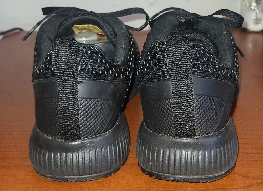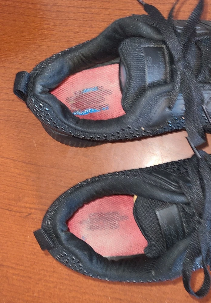 Elevate your work shoe game with these stylish and comfortable Skechers sneakers. Designed with slip-resistant features, these black lace-up sneakers are perfect for any casual occasion. The women's size 9.5 shoes are made with high-quality materials that ensure durability and longevity. The sneakers are crafted with a comfortable fit and a stylish design that complements any outfit. The brand's signature slip-resistant feature ensures that you stay safe and comfortable while wearing these sneakers. These shoes are perfect for any woman who wants to add a touch of elegance and comfort to her shoe collection.