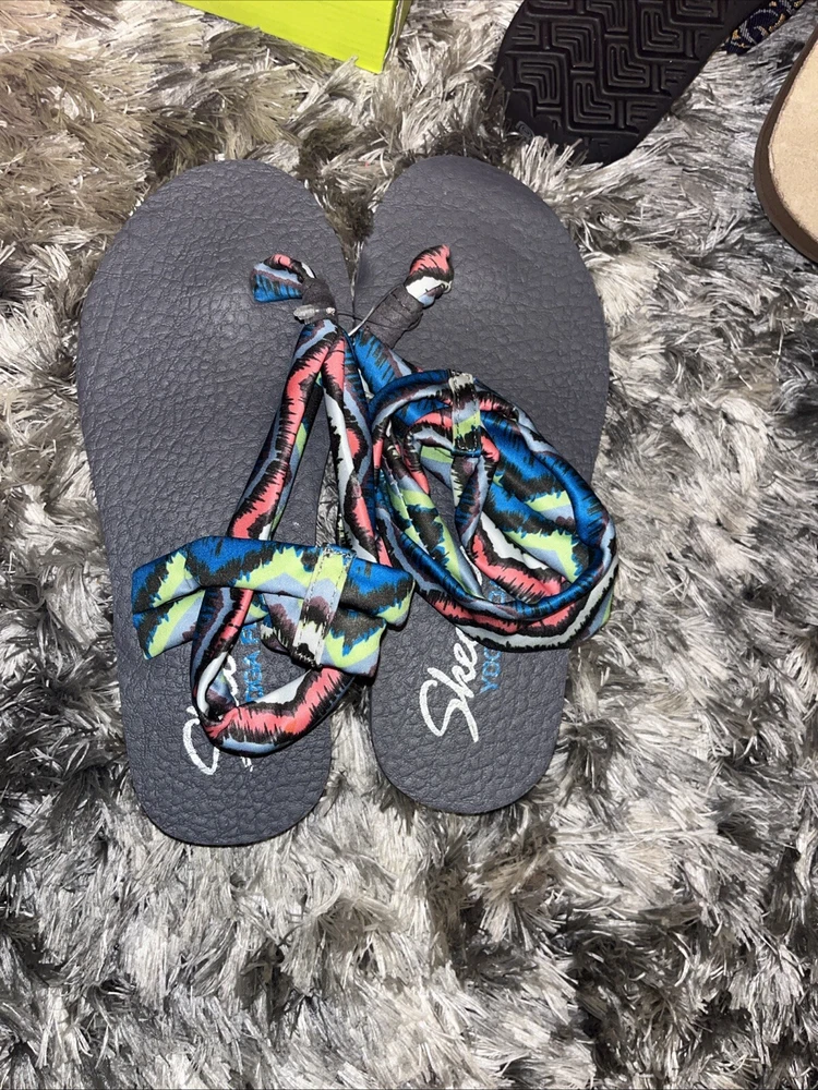 Skechers Yoga Foam Women’s Size 8 Flip Flop Sandals Multicolor Tribal Chevron
