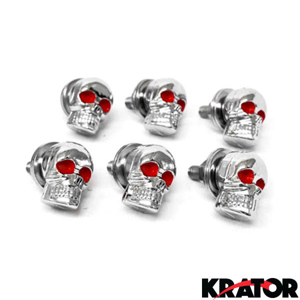 NEW MOTORCYCLE SKULL FENDER / PLATE / WIND SHIELD BOLTS SKELETON HARDWARE NUTS Features: Enhance the look of your vehicle with these 3D Skull Bolts Replaces any 6mm bolt Direct bolt on, easy installation Specification: Color: Chrome with Red Eyes Material: ABS Plastic (Rust Proof) and Steel Condition: 100% Brand New Fitment: 6mm Thread Size (measure your bolts before purchasing) License Plate Bolts, Fairing Bolts, Windscreen Bolts, etc. Dimensions: 3/4" L x 5/8" W x 1" H Lenth of Bolt Threading: 3/4" Package Includes: 6x Skull Bolts - 6mm Thread Includes washers and nuts Upgrade Shipping to 3-Day Choose Expedited shipping option at checkout. California Customers: ⚠️ WARNING: This product may contain chemicals known to the State of California to cause cancer, birth defects or other reproductive harm. For more information go to P65Warnings.ca.gov All trademarks remain property of their respective holders, and are used only to directly describe the products being provided. Their use in no way indicates any relationship between us and the holders of said trademarks. The product being sold in this listing is not DOT approved unless otherwise stated. All goods sold are not DOT approved, they are for off road use only. Laws concerning this product vary from state/province to state/province. Your state/province may prohibit its use on public roads or restrict its use to novelty, show use, off-road areas, or race facility areas only. In some states/provinces off-road uses are also prohibited. The manufacturer and retailer assume no responsibility for any use or application of this product in violation of any applicable law. Before installing this product, please check your state/provincial and local/municipal laws and regulations.