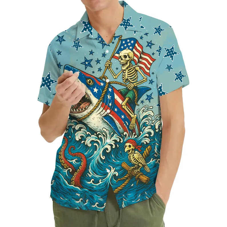 $ 8.56Pirate Skull Hawaii Shirt Men's Beach Vacation Aloha