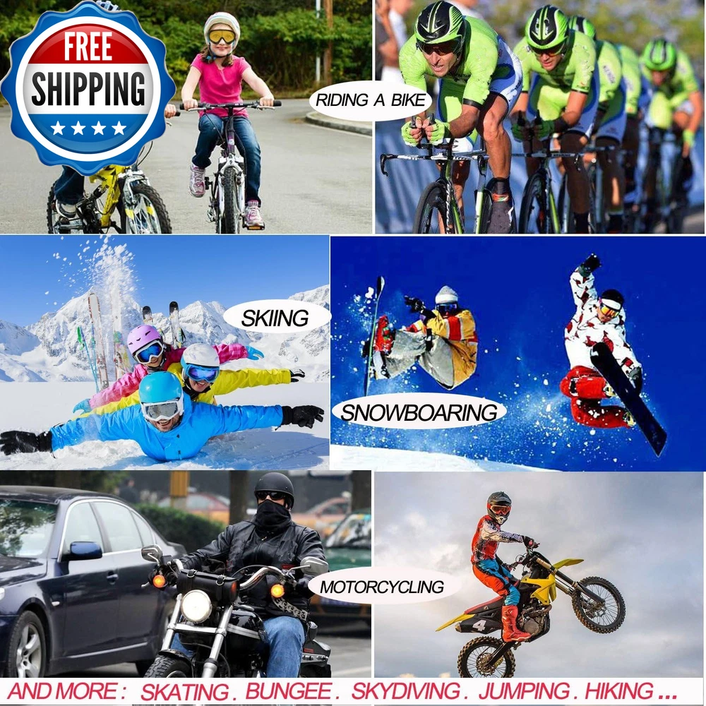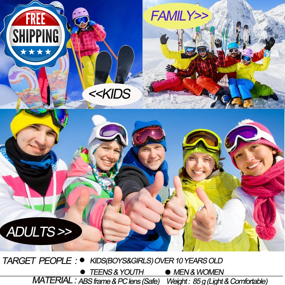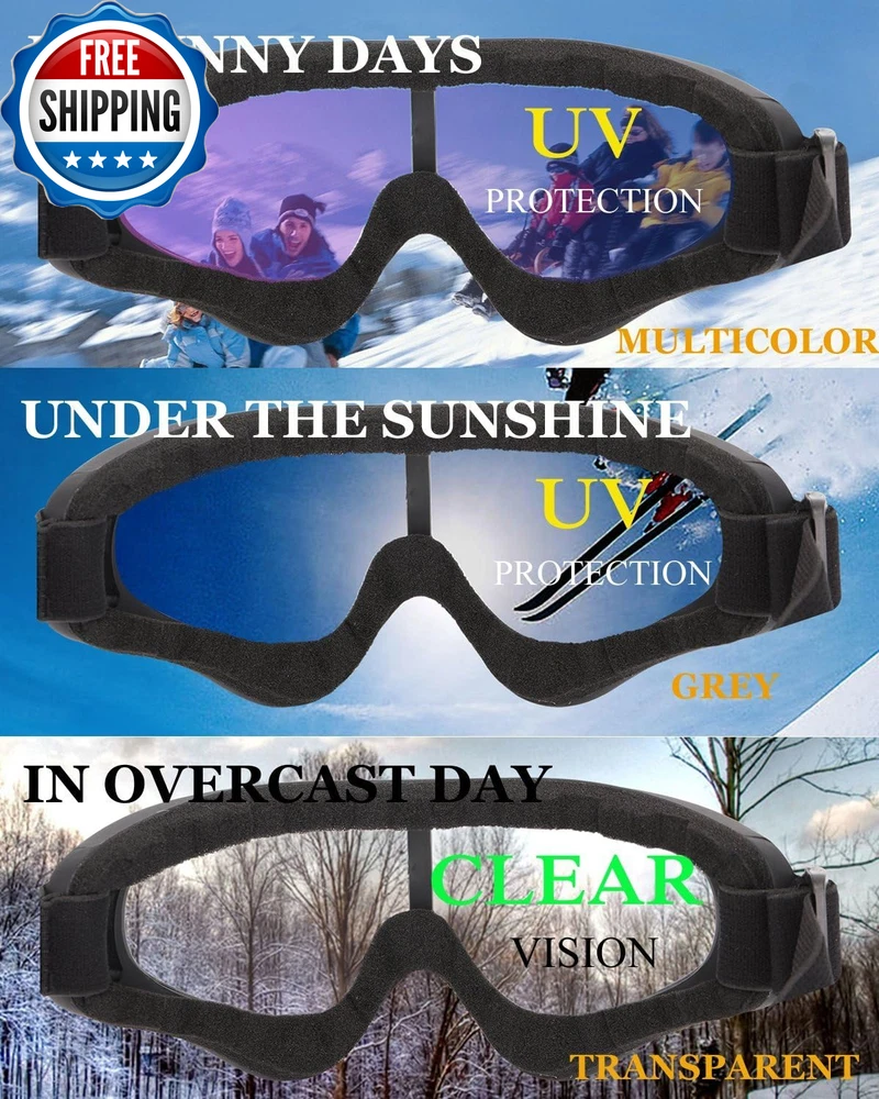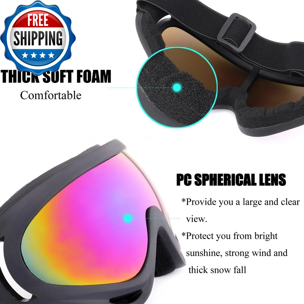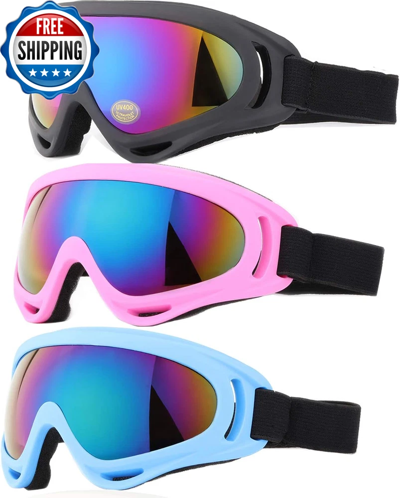 Ski Goggles, Pack of 3 Snowboard Goggles for Kids,Boys,Girls,Youth, Mens Womens PACKAG OF 3-SUITABLE FOR MOST PEOPLE:-YIDOMTO bring you pack of 3 different lens or different color frame. They are perfect suitable for men with small head than normal one, women and kids over 8 years,perfect sets for your family. COMFORTABLE&BREATHABLE AND SAFT:- The PC lens and ABS frames with super toughness protect your face perfectly. The anti-fog groove in both side with breathability can prevent the sweet steaming to fog. Thicken foam make you feel comfortable. VARIOUS USAGE APPLICATION:- Our ski goggles are not only good for ski in the winter days, but also a best choice for you drive, snowboard, go out for hunting, CS Tactical Field, riding your motorcycle or riding the bike in the winter days. DIFFERENT LENS DIFFERENT FUNTIONAL: Multicolor & Grey& Tawny Len are anti-UV and absorb UVA &UVB rays, best choice in sunning day .Yellow Lens can improve the lights, fits using in evening. Transparent provide the best visibility in overcast days. Why you will chose our Yidomto ski goggles Yidomto ski goggles, best partners for skiing or outdoor sports with your family or friends the anti-fog groove in both side with breathability can prevent the sweet steaming to fog. Thicken foam make you feel comfortable. 1.Different lens and different frame for your choice rainbow lens black frame rainbow lens white frame rainbow lens red frame rainbow lens blue frame grey lens black frame transparent lens black frame tawny lens black frame orange lens black frame yellow lens back frame yellow lens-with the effect of improve the lights, fits using in evening. Transparent lenses provide the best visibility in overcast days. Tawny lenses can absorb harmful uva & uvb rays, best choice in sunning day. Perfect package include- pack of 3 ski goggle Usage instruction package includes: Pack of 3 different lens or different frames ski goggles, fit the different demand of your need each package with 3 different lens and different frame, you can change different colors with your mood changes. It is a good choice for your family or friends go out for skiing or snowboard in the winter days. Package of 3-suitable for most people: -Yidomto bring you pack of 3 different lens or different color frame. Perfectly fit your demand of going outdoor sports with your family friends. Part Number glass04 Style Modern Number of Items 3 Item Dimensions LxWxH 8.5 x 5.6 x 3.46 inches Color Multicolor/Grey/Transparent Item Weight 7.68 ounces Material ABS Country of Origin China Package Weight 0.22 Kilograms Sport Type Snow Skiing, Skateboarding Suggested Users Women, Men, Boys, Girls Frame Material Acrylonitrile Butadiene Styrene (ABS) Special Feature Windproof Item Package Dimensions L x W x H 9.21 x 5.39 x 3.03 inches Size One Size Shipping Fast shipping is very important for us. Our standard US shipping service is FREE. Your order will be shipped within 2-3 business days upon full payment received. Your order will be delivered within 2-3 business days after the handling time. We only ship to the confirmed PayPal address. We reserve the right to cancel any order for any reason at any time. We are not responsible for undeliverable addresses. Returns and payment We offer a 30 days return policy from checkout winning date. We allow only PayPal as payment method FeedBack Your feedback very important to us, after you get your package and you are satisfied with our service please leave us positive feedback If you have any problem with your order / any questions please before leave any type of feedback Please visit our eBay store to check out other items for sale! Thank you for shopping at our store.