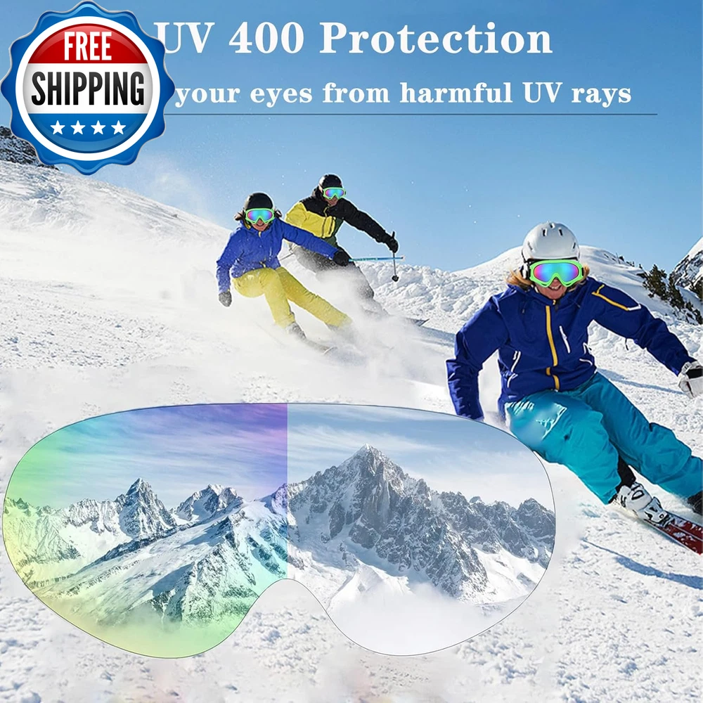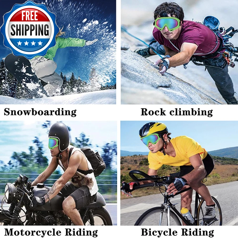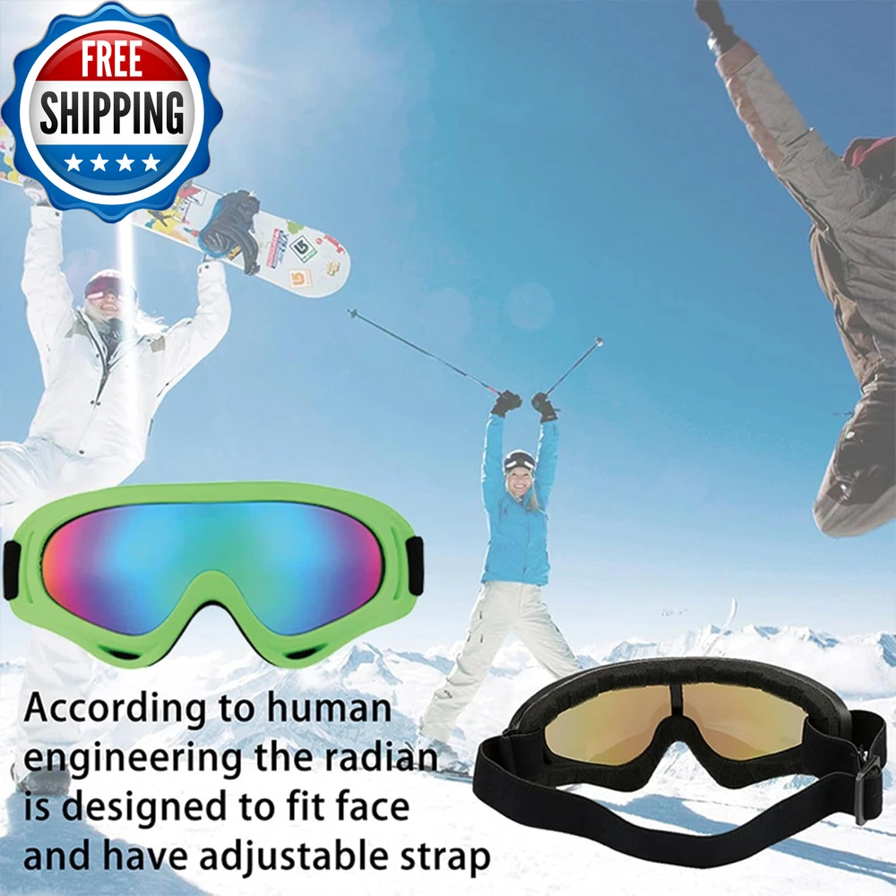 Ski Goggles Snowboard Goggles for Men Women Kids Cycling Motorcycle Snowmobile UV Protection Goggles Winter Snow Sports Glasses for Youth Adult Teens Boys & Girls (Green) Specifications: Colour: Green Lens Material: PC Lens Size: 8 x 17.5cm/3.1 x 6.9 inches Feature: PC hardened mirror, curvy design, anti-frictional, make your vision more open and clear. Sturdy and lightweight, with an adjustable strap suitable for even the most bizarre shaped domes. The ski/snowboard goggles are designed for teenager/youth to adult men and women with its superior anti-fog coating and UV400 protection treatment. UV400 protection The mirror coating can eliminate glare, and the lenses are protected by UV400. Secure TPU frame The soft TPU frame is shock-resistant, ensuring your safety in the event of a drop or collision. Ventilation system The ventilation windows on the top and bottom create effective air circulation to inhibit the formation of fog. Department Unisex Country of Origin China Package Dimensions 8.27 x 4.72 x 0.47 inches; 1.06 ounces Shipping Fast shipping is very important for us. Our standard US shipping service is FREE. Your order will be shipped within 2-3 business days upon full payment received. Your order will be delivered within 2-3 business days after the handling time. We only ship to the confirmed PayPal address. We reserve the right to cancel any order for any reason at any time. We are not responsible for undeliverable addresses. Returns and payment We offer a 30 days return policy from checkout winning date. We allow only PayPal as payment method FeedBack Your feedback very important to us, after you get your package and you are satisfied with our service please leave us positive feedback If you have any problem with your order / any questions please before leave any type of feedback Please visit our eBay store to check out other items for sale! Thank you for shopping at our store.