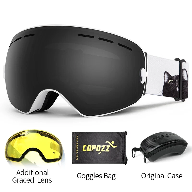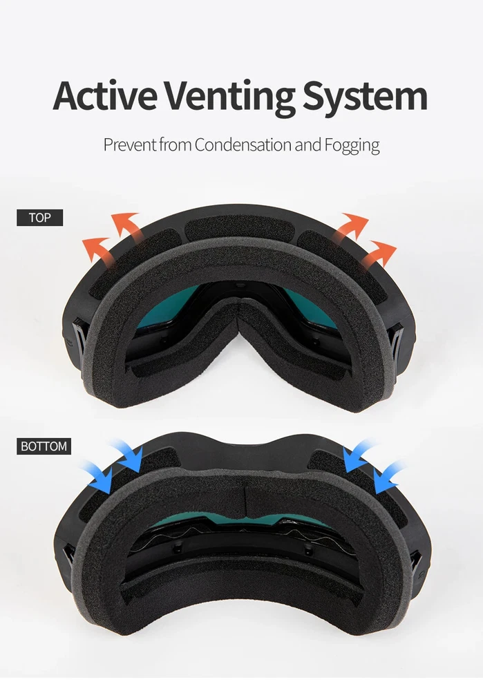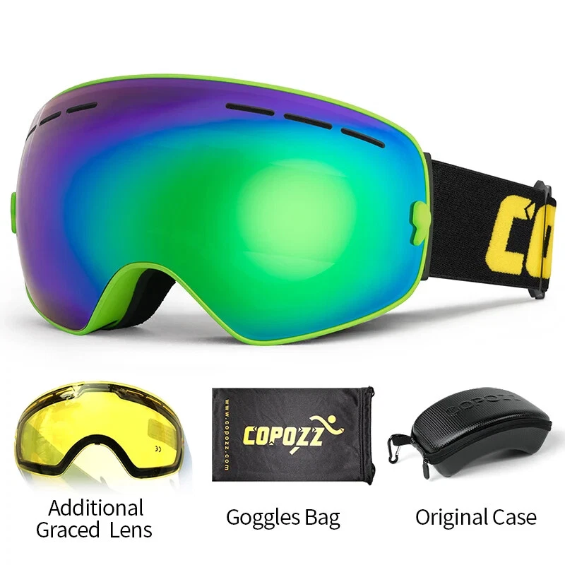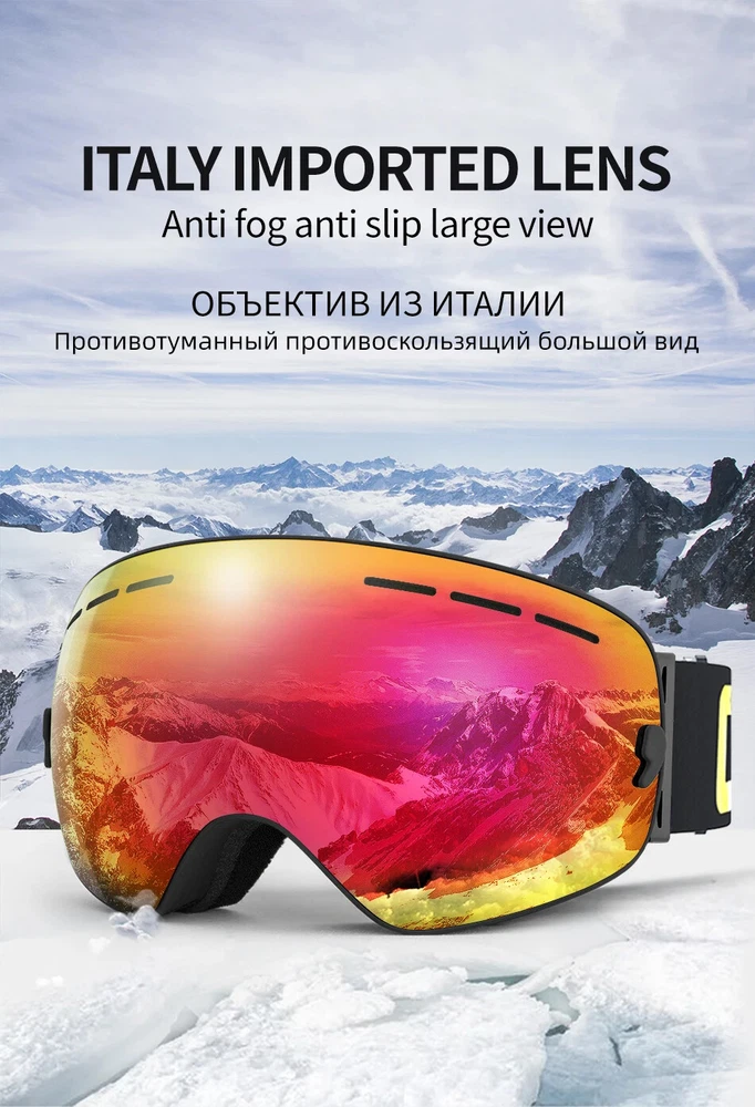 Product Features Eyewear Colors: Red Frame, Black Frame, Blue Frame, Yellow Frame, White Frame, Greem Frame, Pink Frame, Orange Frame, Silver Lens, Orange Lens, All Black Eyewear Type: Professional Skiing Eyewear Lenses Optical Attribute: UV400 Protection Anti-fog, Explosion-proof, Double layer lense, Mirror Coating Lens Width: 178 mm Lens Height: 98 mm Weight: 180g Frames Meterial: TPU Lenses Meterial: PC Certification: ISO9001 About Frame: Made from TPU material that will not cause injury to the eye. About Lens: Using doublePC material which has scratch resistance, impact resistance, anti-uv, anti-fog functions Package includes 1 * Ski Goggles 1 * Goggles Bag 1 * Additional Lens (For light tint weak sunlight Cloudy) 1 * Original Case (Dust proof Anti pressure) Intended Use Due to the strong sunlight, reflected light from snow mountain and cold wind that stimulate the eyes, we suggest you choose a security professional ski goggles is more fit for your face and can prevent your eyes from the heavy wind. The lens is made from imported material and its mirrored coating is hardened,scratch-resistant and abrasion-proof. The goggles are 100% Anti-UV, play a key role in eyes protection Note Please tear protective film inside and outside when using. Included Accessories Additional Lens - For light tint weak sunlight Cloudy Original Case - Dust proof Anti pressure Warning/Disclaimer ⚠ WARNING: This product can expose you to chemicals including DEHP, which is known to the State of California to cause cancer and birth defects or other reproductive harm. For more information go to www.P65Warnings.ca.gov.