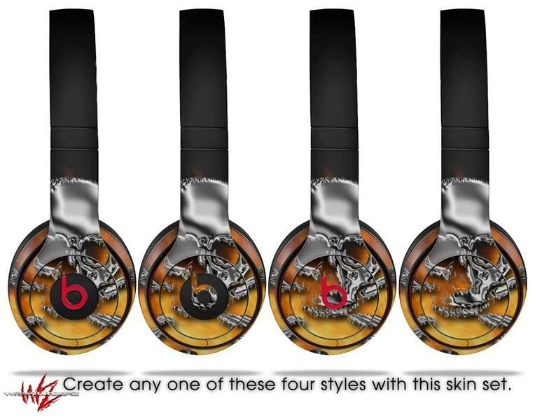Skin Beats Solo 2 3 Chrome Skull on Fire Wireless Headphones NOT INCLUDED
