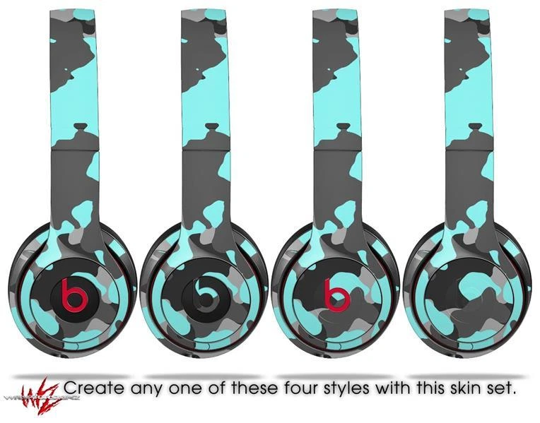 Skin Beats Solo 2 3 Old School Camouflage Neon Teal Headphones NOT INCLUDED