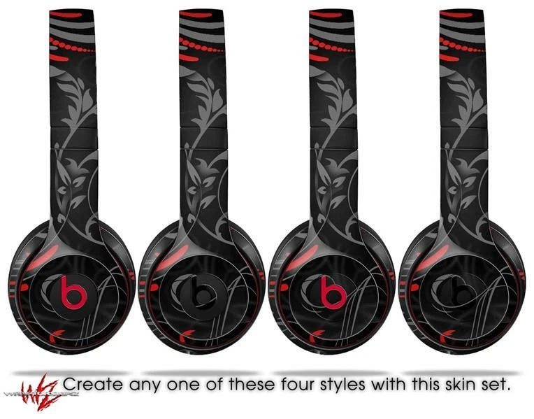 Skin Beats Solo 2 3 Twisted Garden Gray Red Wireless Headphones NOT INCLUDED