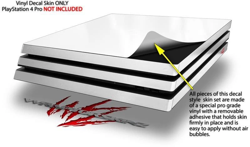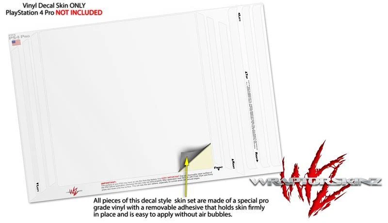 Notice: PS4 Pro Gaming Console NOT INCLUDED Fits: Sony PS4 Pro Console See more designs HERE . Features: Pro Grade Skin - Ships From and Made In USA by WraptorSkinz ® PS4 NOT INCLUDED - Fits Sony Playstation 4 Pro Console ONLY Matching controller skins sold separately. Wrap covers top and sides, does not cover the bottom. Easy to apply without air bubbles. Dual Layer Tough professional grade vinyl material coated with a high gloss laminate. WraptorSkinz ® are self adhering vinyl skins that help prevent scratches and look great doing it. Unlike bulky silicon and plastic covers, WraptorSkinz ® are designed to be thin and very tough. WraptorSkinz ® are a composite of two layers of commercial grade materials. The bottom layer is a soft, flexible vinyl with a special removable adhesive that is easily positioned and applied without air bubbles. The bottom layer print with special UV protected, fade resistant inks that deliver superb photo quality designs in vibrant colors. Finally we bond a professional grade laminate over the entire skin adding a glossy protective finish.