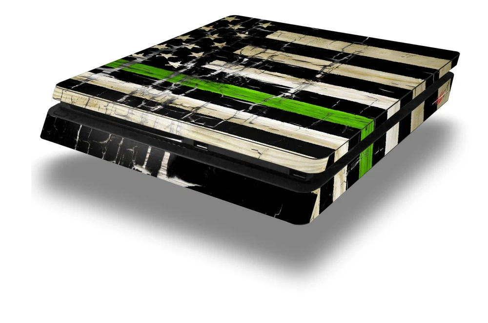 Skin for PS4 Slim Cracked Green Line USA American Flag Playstation 4 Console