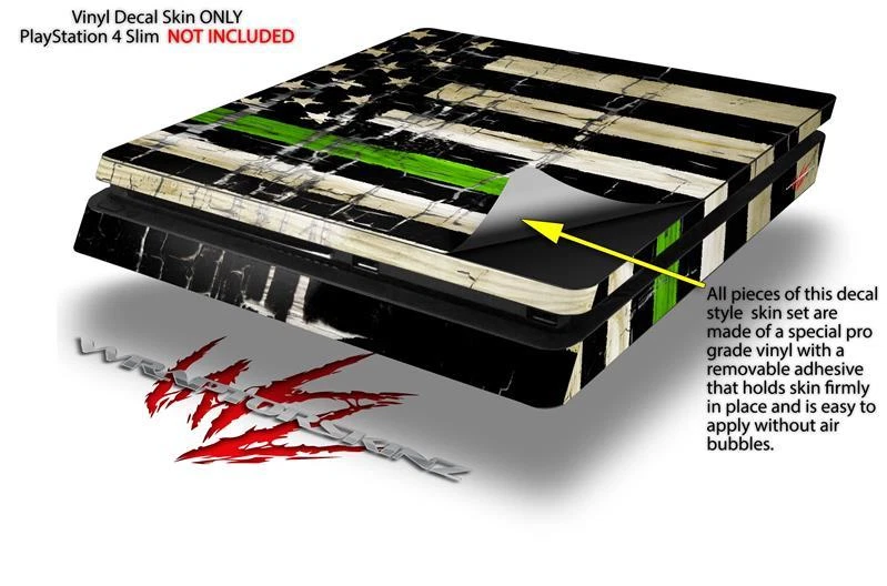 Type: Decal Color: Green gtin13: Does not apply Country/Region of Manufacture: United States Compatible Product: Console MPN: 47442PS4SlimWSKZ To Fit: Console Brand: WraptorSkinz Material: Vinyl UPC: Does not apply Compatible Model: For Sony PlayStation 4