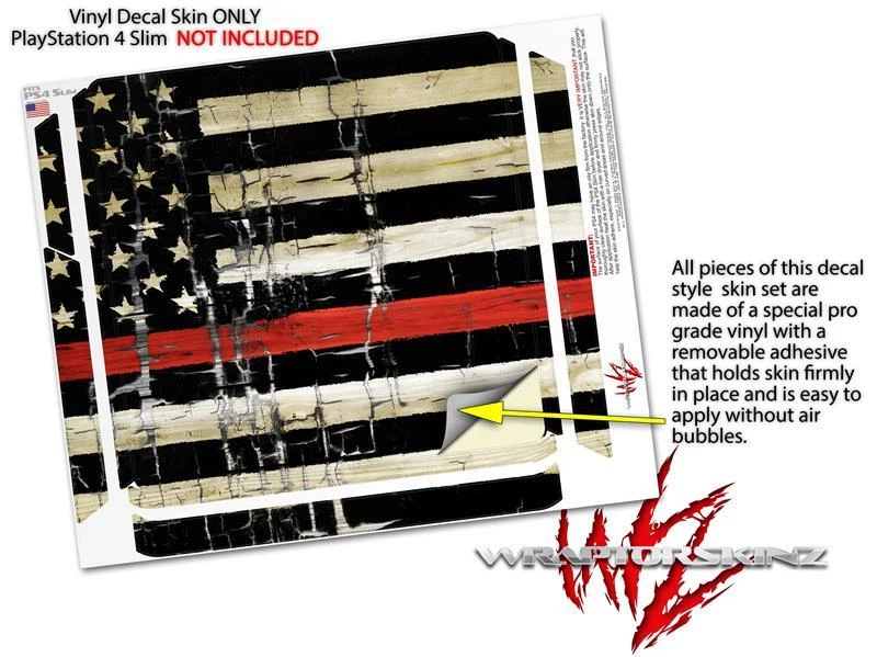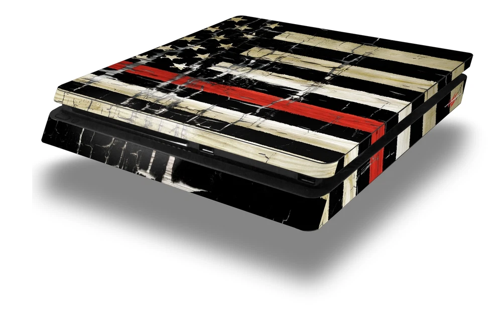 Skin for PS4 Slim Cracked Red Line USA American Flag Playstation 4 Console