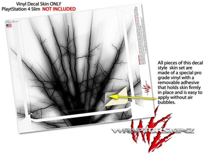 Brand: WraptorSkinz Material: Vinyl gtin13: Does not apply Type: Decal MPN: 44034PS4SlimWSKZ To Fit: Console Compatible Model: For Sony PlayStation 4 UPC: Does not apply Compatible Product: Console Country/Region of Manufacture: United States Color: Black