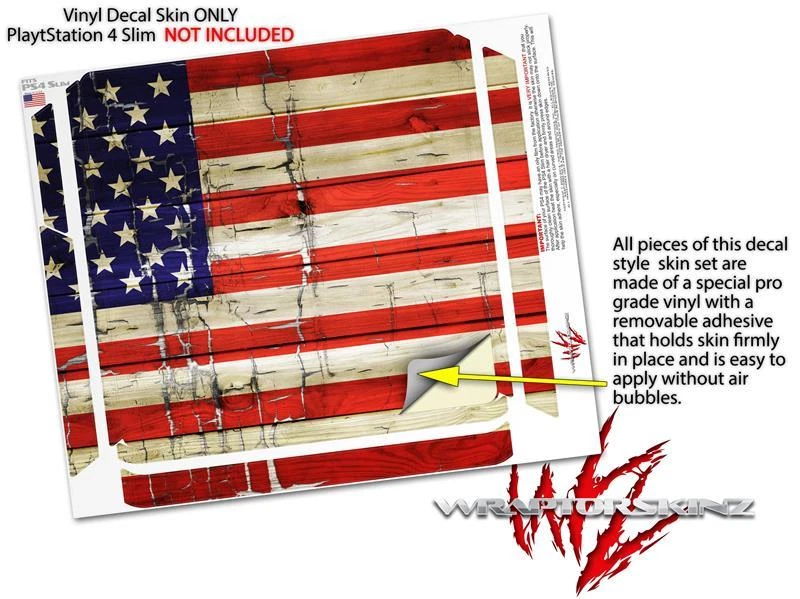 Skin for PS4 Slim Painted Faded Cracked USA American Flag Playstation 4 Console