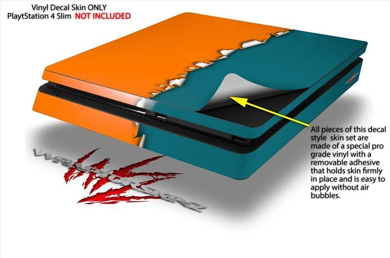 Notice: PS4 Slim Gaming Console NOT INCLUDED Fits: Sony PS4 Slim Console See more designs HERE . Features: Pro Grade Skin - Ships From and Made In USA by WraptorSkinz ® ONLY fits Sony Playstation 4 Slim Console. DOES NOT fit PS4 Original or Pro. PS4 Slim System NOT Included. Matching controller skins sold separately. Wrap covers top and sides, does not cover the bottom. Easy to apply without air bubbles. Dual Layer Tough professional grade vinyl material coated with a high gloss laminate. WraptorSkinz ® are self adhering vinyl skins that help prevent scratches and look great doing it. Unlike bulky silicon and plastic covers, WraptorSkinz ® are designed to be thin and very tough. WraptorSkinz ® are a composite of two layers of commercial grade materials. The bottom layer is a soft, flexible vinyl with a special removable adhesive that is easily positioned and applied without air bubbles. The bottom layer print with special UV protected, fade resistant inks that deliver superb photo quality designs in vibrant colors. Finally we bond a professional grade laminate over the entire skin adding a glossy protective finish.