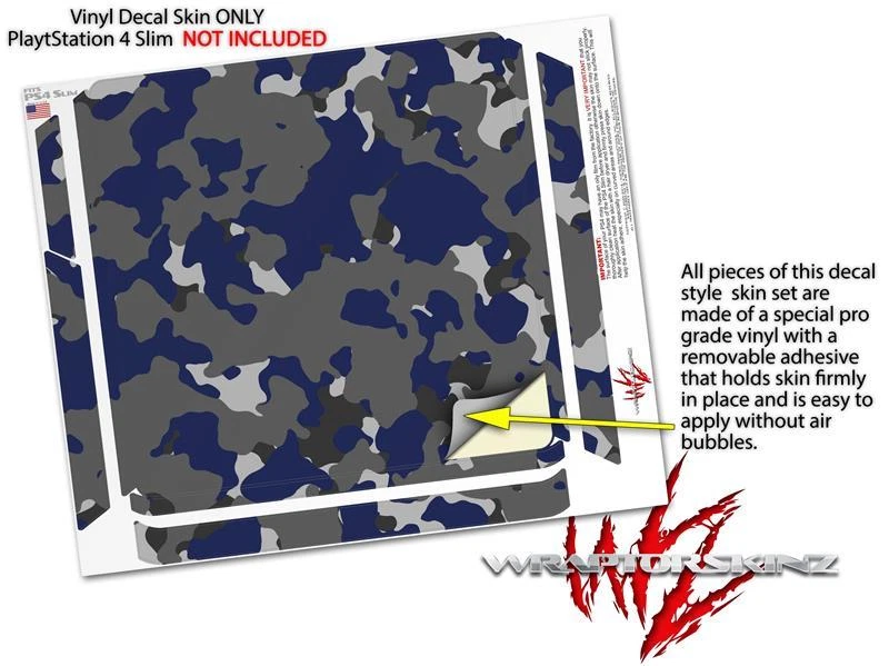 Skin for PS4 Slim WraptorCamo Old School Camouflage Camo Blue Navy Playstation