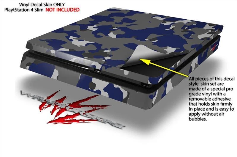 Notice: PS4 Slim Gaming Console NOT INCLUDED Fits: Sony PS4 Slim Console See more designs HERE . Features: Pro Grade Skin - Ships From and Made In USA by WraptorSkinz ® ONLY fits Sony Playstation 4 Slim Console. DOES NOT fit PS4 Original or Pro. PS4 Slim System NOT Included. Matching controller skins sold separately. Wrap covers top and sides, does not cover the bottom. Easy to apply without air bubbles. Dual Layer Tough professional grade vinyl material coated with a high gloss laminate. WraptorSkinz ® are self adhering vinyl skins that help prevent scratches and look great doing it. Unlike bulky silicon and plastic covers, WraptorSkinz ® are designed to be thin and very tough. WraptorSkinz ® are a composite of two layers of commercial grade materials. The bottom layer is a soft, flexible vinyl with a special removable adhesive that is easily positioned and applied without air bubbles. The bottom layer print with special UV protected, fade resistant inks that deliver superb photo quality designs in vibrant colors. Finally we bond a professional grade laminate over the entire skin adding a glossy protective finish.