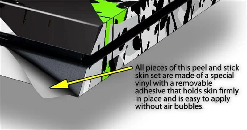 Notice: PS4 Gaming Console NOT INCLUDED Fits: Sony PS4 Console (Original) Features: Skin covers top, front and side of the console. Thin yet strong and are compatible with most accessories. Tough vinyl material coated with a high gloss laminate. Easy to apply without air bubbles. Ships From and Made In USA by WraptorSkinz ® WraptorSkinz ® are self adhering vinyl skins that help prevent scratches and look great doing it. Unlike bulky silicon and plastic covers, WraptorSkinz ® are designed to be thin and very tough. WraptorSkinz ® are a composite of two layers of commercial grade materials. The bottom layer is a soft, flexible vinyl with a special removable adhesive that is easily positioned and applied without air bubbles. The bottom layer print with special UV protected, fade resistant inks that deliver superb photo quality designs in vibrant colors. Finally we bond a professional grade laminate over the entire skin adding a glossy protective finish.