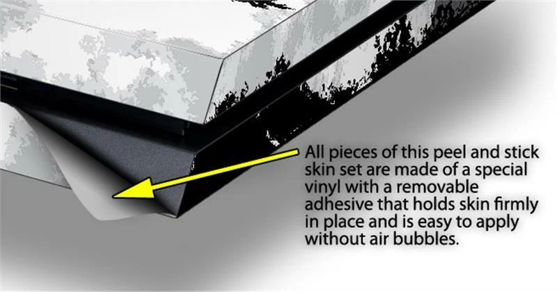 Notice: PS4 Gaming Console NOT INCLUDED Fits: Sony PS4 Console (Original) Features: Skin covers top, front and side of the console. Thin yet strong and are compatible with most accessories. Tough vinyl material coated with a high gloss laminate. Easy to apply without air bubbles. Ships From and Made In USA by WraptorSkinz ® WraptorSkinz ® are self adhering vinyl skins that help prevent scratches and look great doing it. Unlike bulky silicon and plastic covers, WraptorSkinz ® are designed to be thin and very tough. WraptorSkinz ® are a composite of two layers of commercial grade materials. The bottom layer is a soft, flexible vinyl with a special removable adhesive that is easily positioned and applied without air bubbles. The bottom layer print with special UV protected, fade resistant inks that deliver superb photo quality designs in vibrant colors. Finally we bond a professional grade laminate over the entire skin adding a glossy protective finish.