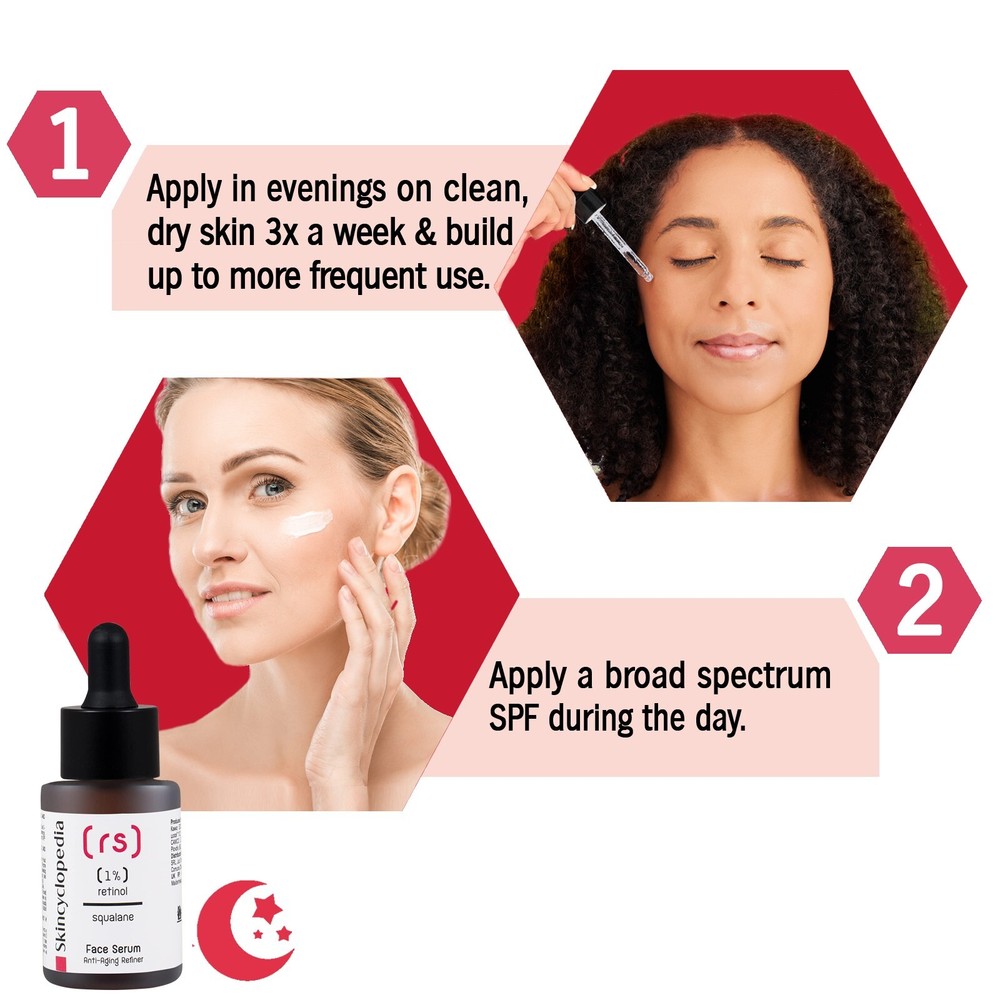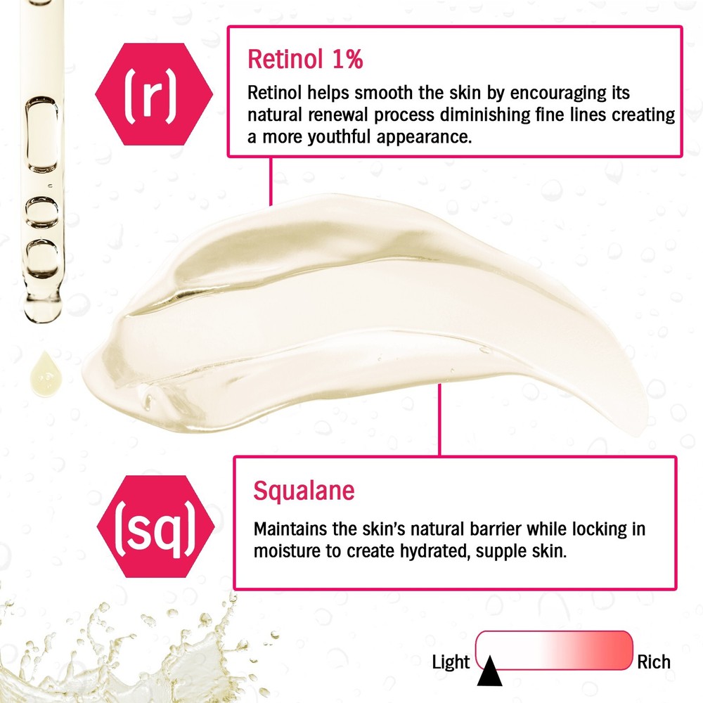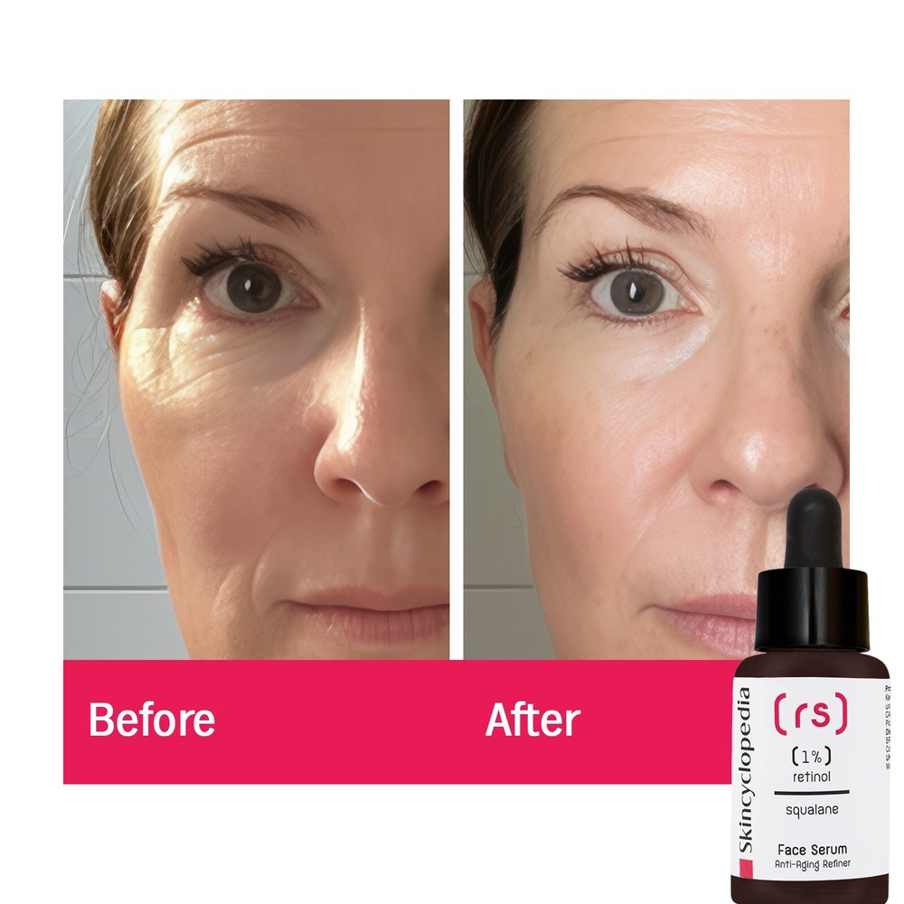Skincyclopedia Pure Retinol & Squalane Face Serum – Anti Aging Facial Serum, Brightens Skin Tone, Wrinkle & Fine Lines Refinement, Blemish Correction, Luminous Appearance & Smooths Skin Skincyclopedia Retinol + Squalane Night Serum A Transformative Nighttime Elixir for Youthful, Radiant Skin Experience the rejuvenating power of our Retinol + Squalane Night Serum from Skincyclopedia, designed to target multiple signs of aging while brightening your complexion. This award-winning formula provides luxurious hydration and enhances your skin’s natural radiance, giving you a glowing, youthful look night after night. Powerful Ingredients for Noticeable Results Retinol is known for its remarkable ability to reduce the appearance of fine lines and wrinkles, delivering a smoother and firmer texture. Squalane deeply hydrates and nourishes, helping to create a balanced and radiant complexion. Together, they work in harmony to brighten your skin, visibly fading dark spots and promoting an even skin tone. Who It's For This facial serum is perfect for individuals seeking a solution to address the early signs of aging, dark spots, uneven skin tone, and dullness. Suitable for all skin types, it is designed for those who desire a revitalized and glowing complexion. Use it as part of your nightly skincare routine to wake up with refreshed and younger-looking skin. How to Use For optimal results, apply the Skincyclopedia Retinol + Squalane Night Serum in the evening after cleansing and toning. Gently massage a few drops onto your face and neck, allowing the formula to absorb fully before following with your favorite moisturizer. Consistent nightly use will help enhance your skin’s radiance over time. Retinol visibly smooths fine lines and wrinkles by promoting skin renewal, giving your complexion a firmer and more youthful appearance over time. Squalane provides deep hydration , locking in moisture to leave your skin feeling soft, supple, and plump while supporting the skin’s natural barrier function. Brightens the skin by reducing the appearance of dark spots and uneven skin tone, enhancing overall radiance and giving your complexion a luminous glow. Improves skin texture , helping to minimize the appearance of pores and leaving your skin smoother and more refined after regular use. Diminishes the look of dark circles , revitalizing the delicate under-eye area for a refreshed and well-rested look when you wake up. Enhances the skin’s natural radiance , supporting a balanced and healthy complexion while targeting multiple signs of aging for a more youthful look.