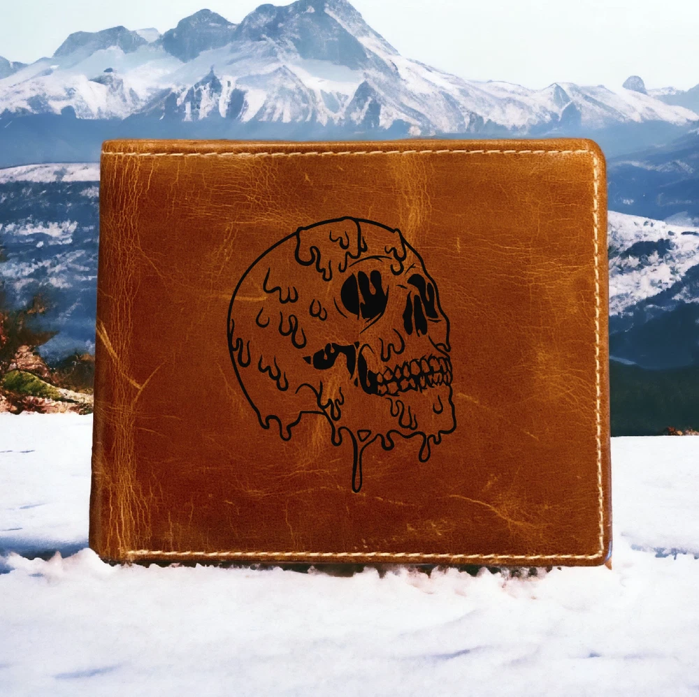 Skull Leather Wallet Bifold Premium Quality Buffalo Abstract Trippy Horror NEW