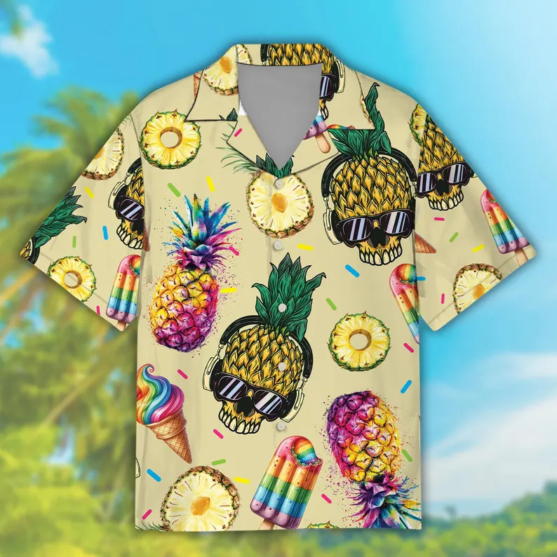 Pineapple Skull Hawaii Shirt Funny Aloha Beach Summer Vacation Men Women