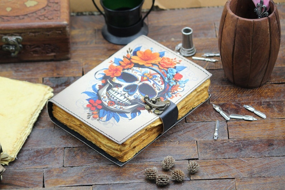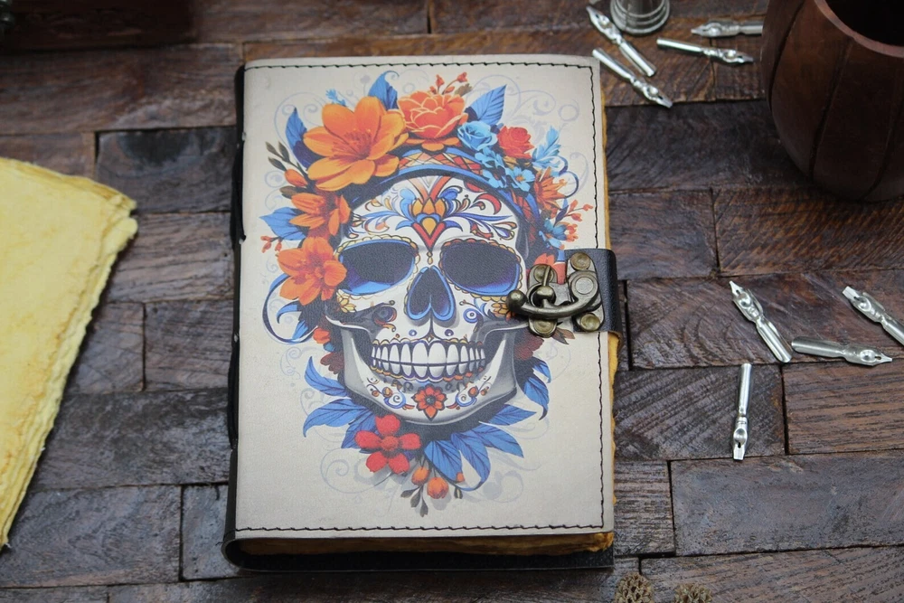 This luxury edition leather journal features a unique skull print on the cover, making it a limited edition collectible item. Handmade in India, this personalized journal is perfect for those looking for a special and exclusive writing space. The first color photo of the journal adds a distinctive touch to this special edition piece. With a luxurious leather cover and personalized attributes, this journal is ideal for those seeking a high-quality and stylish writing instrument. Photo personalization on cover - If you want me to print an image, please attach the image Etsy conversation box after you place your order and choos photo personalization in the variation Option if you don’t want personalization so please choose skull journal. Perfect Gift idea for Valentines Day Mushroom Printed Blank Spell Book of Shadowd Leather Journal Christmas gifts for womens - 200 Deckle-Edged Pages - Choose Your Size" Unleash your creativity with our Exquisite Handcrafted Leather Journal featuring a Mashroom Print. This journal is a masterpiece, not just for your ideas but for your senses too. It boasts 200 premium deckle-edged pages that invite your pen to dance across their textured surface. Available in various sizes - 7x5, 8x6, 10x7, and 13x10 - you can choose the perfect canvas for your imagination. The genuine leather cover exudes quality and durability, and it even comes with a one-month warranty. Whether you're gifting it or keeping it for yourself, this journal is designed to inspire and endure. Get ready to embark on a creative journey like no other. Mushroom ,Pink Mushroom,Blank Spell book,Book of shadows,Leather journal,Moon phases,Mushroom design ,Vintage style ,Nature inspired,Mushroom journal,Red mushroom ,Fairy forest ,Art journal, Writing diary