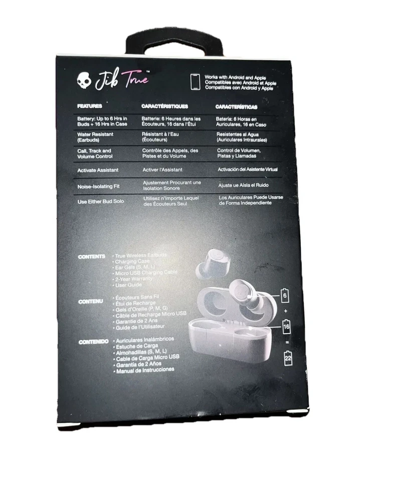 Experience high-quality sound with the Skullcandy Jib True In Ear Wireless Headphones in Gray. These earbuds provide a comfortable fit and come with replaceable ear tips for a secure and customizable listening experience. With Bluetooth connectivity, you can enjoy seamless wireless communication and noise isolation, making them perfect for DJing or any other activity. The Jib True headphones also feature touch control, active noise cancellation, and water-resistant design, making them sweat-proof and perfect for workouts. Additionally, the built-in microphone and NFC Bluetooth pairing allow for easy call functions and wireless charging. These headphones are the ultimate portable audio accessory for anyone who wants to enjoy high-quality sound on-the-go.