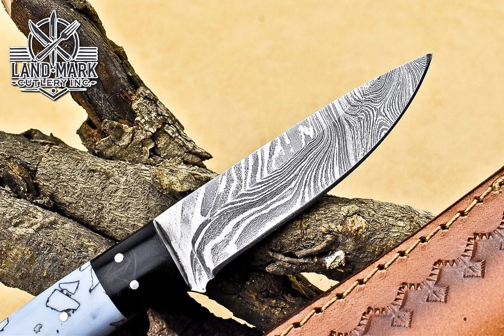 Blade Edge: Plain Tang: Half Blade Material: Damascus Steel Handle Material: RESIN Country/Region of Manufacture: Canada Blade Length: 4 INCH Year: 2025 Brand: SOLINGEN KNIVES Features: Sheath Included Handmade: Yes Blade Type: Drop Point Blade Color: Silver Type: Wild Life, Chef, Dagger Boot Knife, Sports, Dagger, Gift, Damascus Knife, Damascus Steel, Hand Made, Boot, Bowie, Bowie Knife, Combat, Everyday Carry, Hunting, Survival, Throwing Dexterity: Ambidextrous Original/Reproduction: Original
