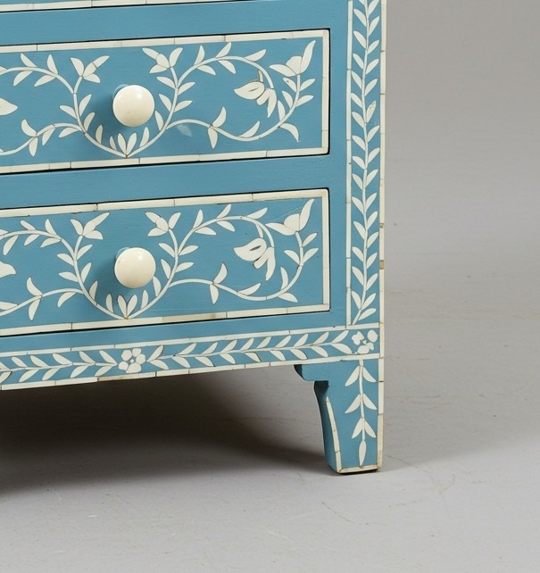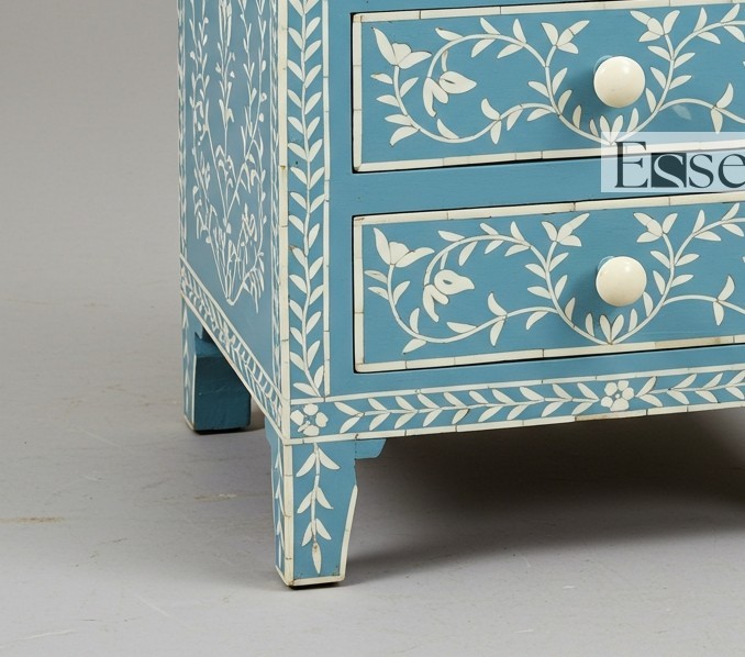 This stunning bedside table adds instant elegance to any bedroom! The intricate floral bone inlay work is breathtaking—each petal and vine carefully handcrafted by skilled artisans. I love how the soft sky blue color brightens up my space while the three spacious drawers keep everything organized. The quality is exceptional—you can feel the generations of craftsmanship in every detail. It’s the perfect blend of functionality and art, making my bedroom feel like a boutique hotel. The ethical camel bone inlay gives it such unique character. Definitely a conversation starter and worth every penny!