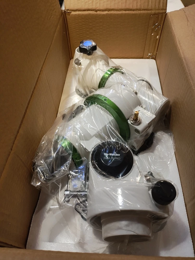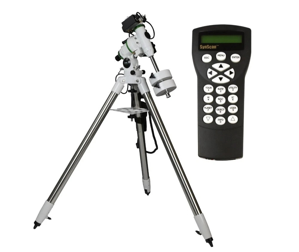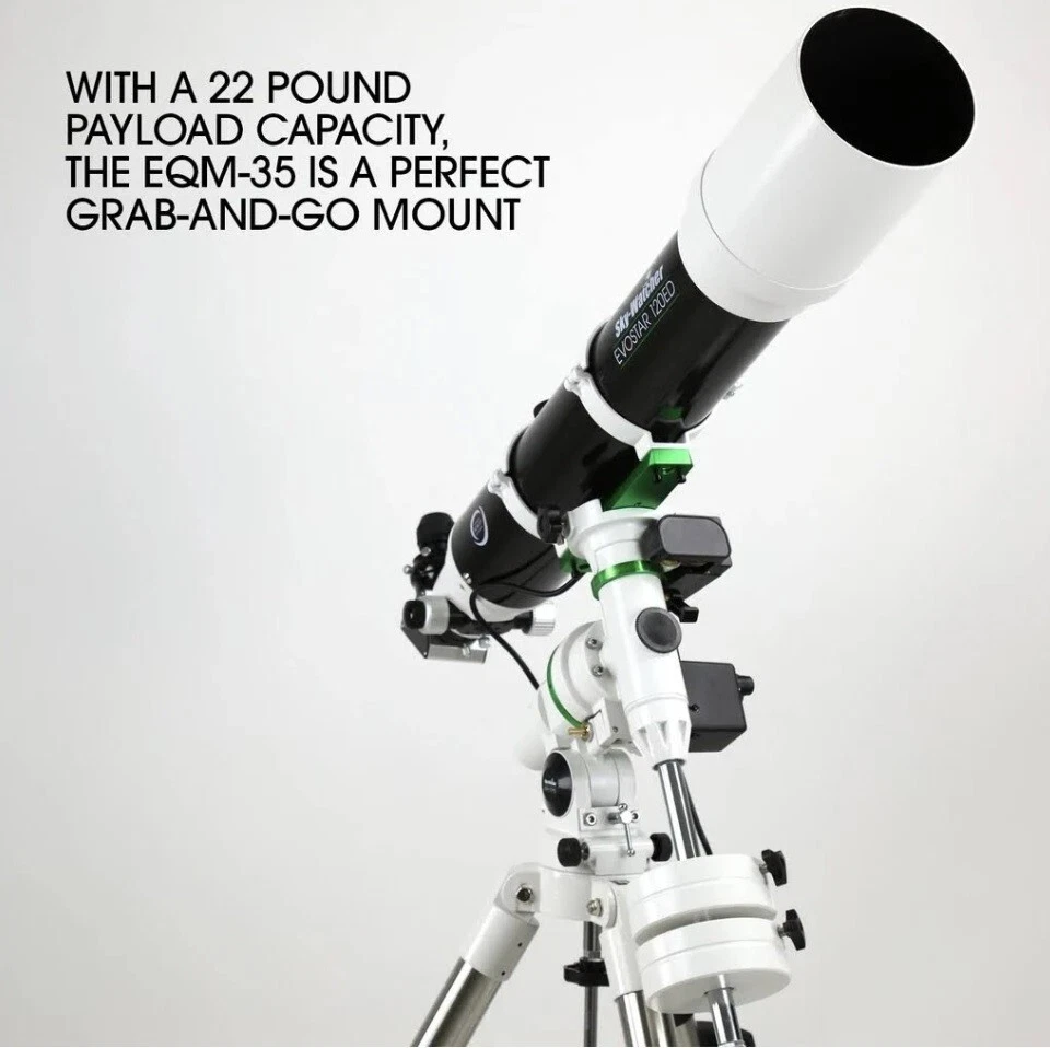 Explore the night sky with the Sky Watcher EQM-35 PRO Equatorial GoTo Mount, a robust and precise mount designed for your telescope. This motorized mount is compatible with GPS, allowing for seamless star alignment. Its intuitive interface facilitates smooth and accurate tracking of celestial objects, making it an ideal companion for both amateur and seasoned astronomers. The EQM-35 PRO is crafted to support a variety of telescopes, ensuring a versatile and enriching stargazing experience. The white, sleek design is both aesthetically pleasing and functional, complementing your astronomical gear with style. With a sturdy item weight of 51 pounds, this mount is built to last and enhance your cosmic adventures.