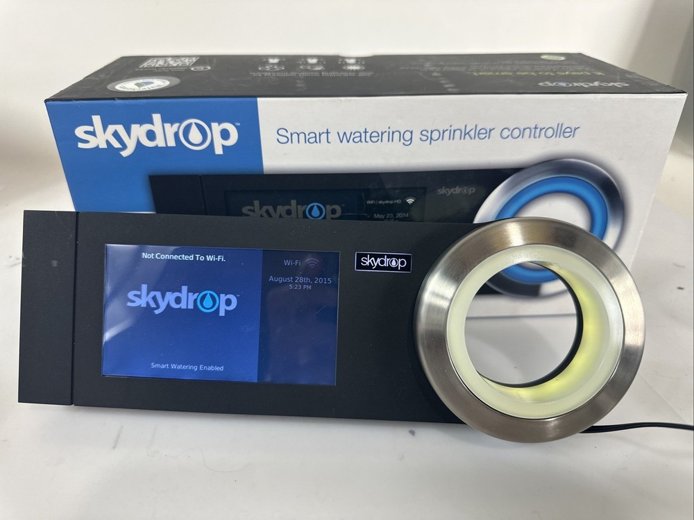 The Skydrop SDCRW1.0 Black 8 Zone Smart LCD Display Wi-Fi Halo Sprinkler Controller is a top-of-the-line product for managing your yard and garden watering needs. With its sleek black design and advanced features such as Alexa and Google Home compatibility, app control, and Wi-Fi connectivity, you can easily customize and automate your watering schedule. The 8 zone system allows for precise control over different areas of your outdoor space, while the LCD display provides clear instructions and settings. This product from SkyDrop is a must-have for any homeowner looking to streamline their watering routine.