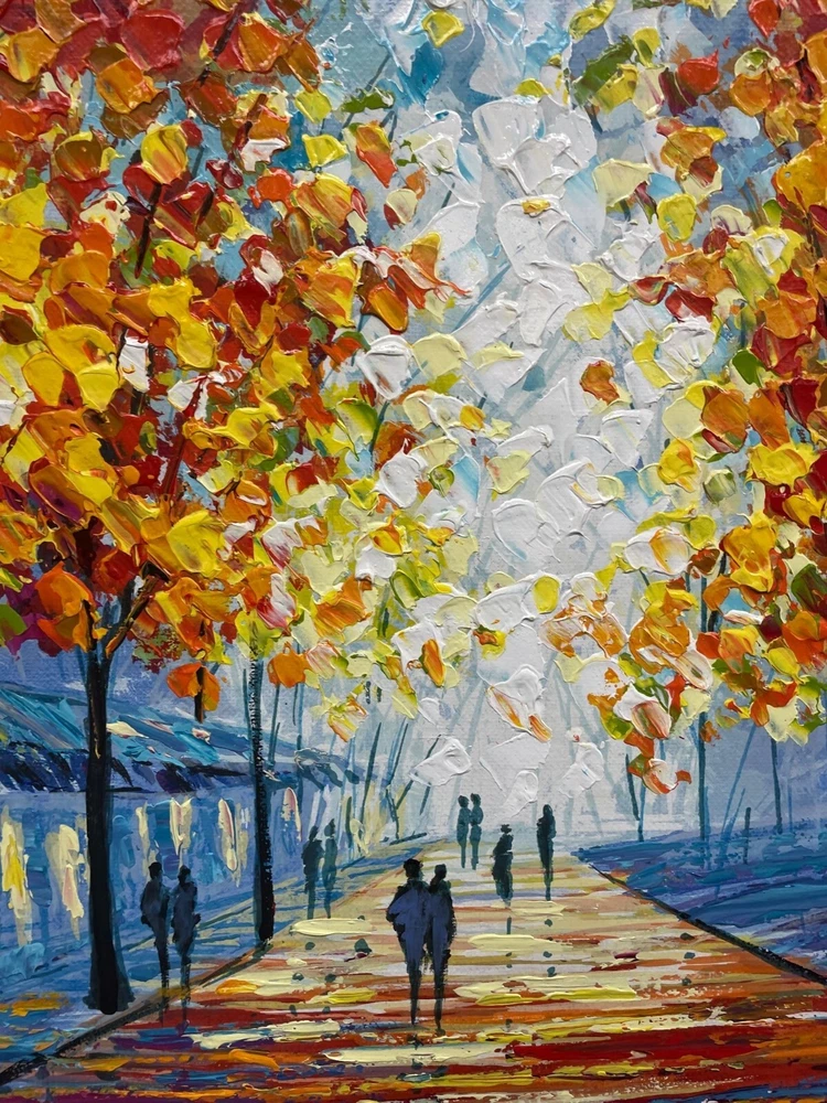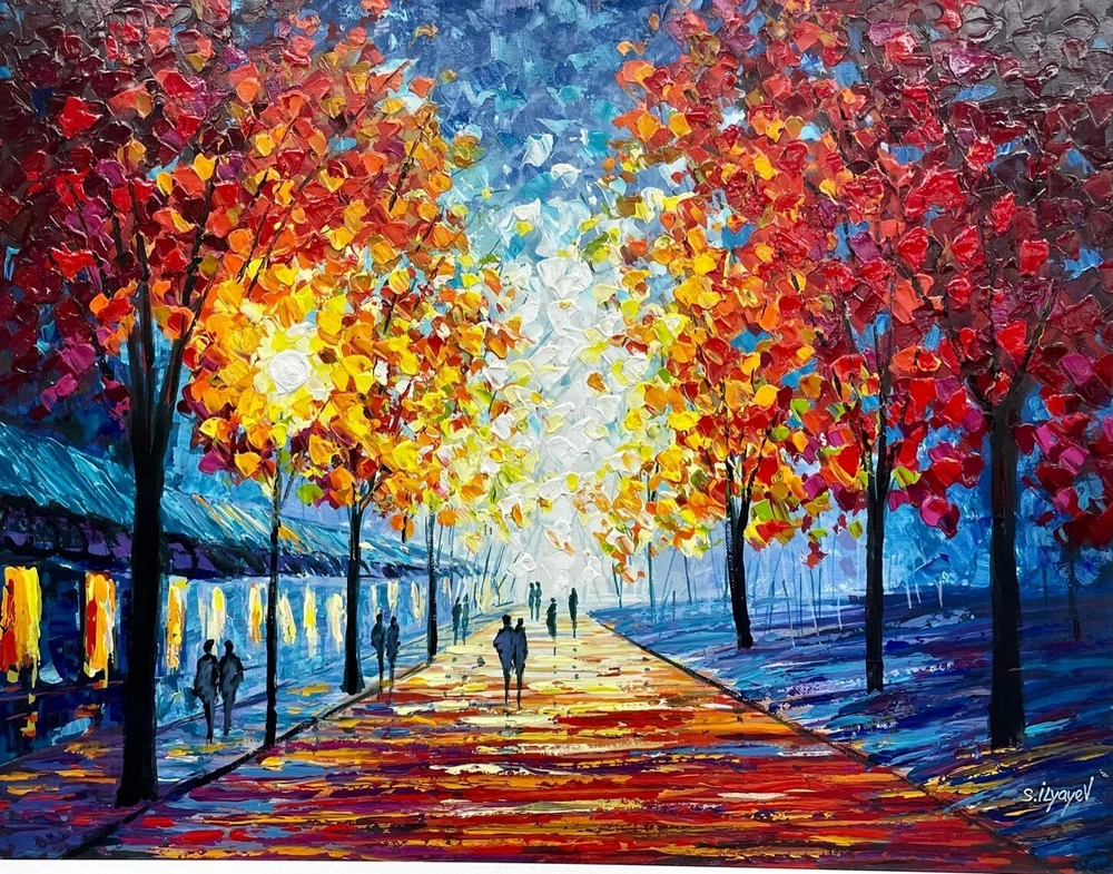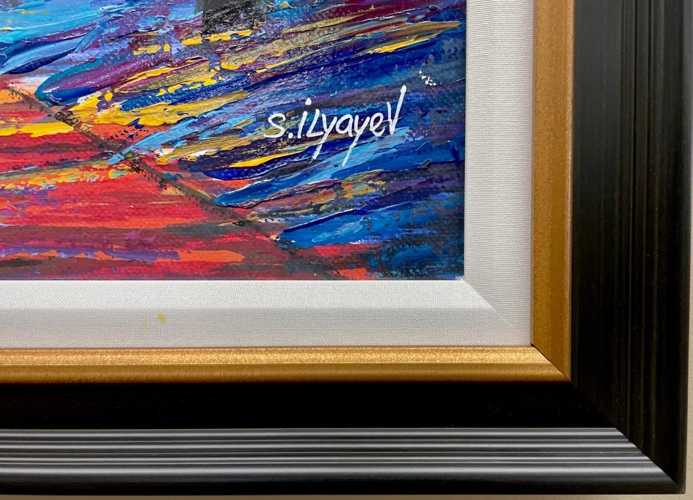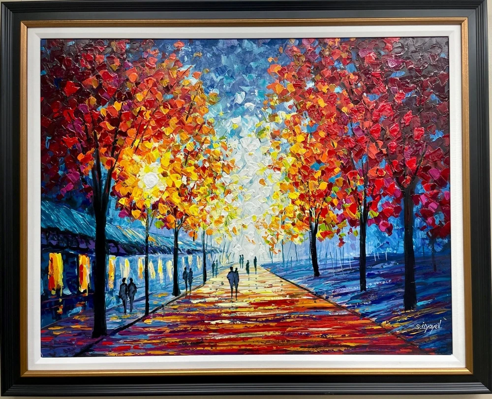 Slava Ilyayev "Evening Stroll" This artwork is: New Signed by the artist Hand Signed and Embellished Limited Edition Serigraph on Canvas ( Edition number received may vary from image shown) Custom Framed in a contemporary Black & Gold frame with a liner. Frame Size: 36" x 44" Canvas Size: 30" x 40" Hanging Hardware installed on back of frame In Stock and Framed When Purchased Custom Packed for Safe Delivery Framed in the U.S.A. About the Artist... Slava Ilyayev was born on May 11, 1970 in Baku, Azerbaijan (from U.S.S.R). Ilyayev began studying art in his hometown in 1991. After immigrating to Israel in 1995, he continued his studies at the renowned Avni institute of art in Tel Aviv. Ilyayev participated in his first major exhibitions in 1999, at the art and sculpture union, in Tel Aviv and at the Safari gallery in Jerusalem. Exhibits soon followed throughout Israel and abroad, as well as shows in the United States. Ilyayev's works are characterized by the heavy texture he creates by applying oil paints with a palette knife. The use of light and shadow in his works is inspired by changing of seasons. In addition to painting, Ilyayev teaches art in schools and academies in Israel, an endeavor which he first began in 1998.