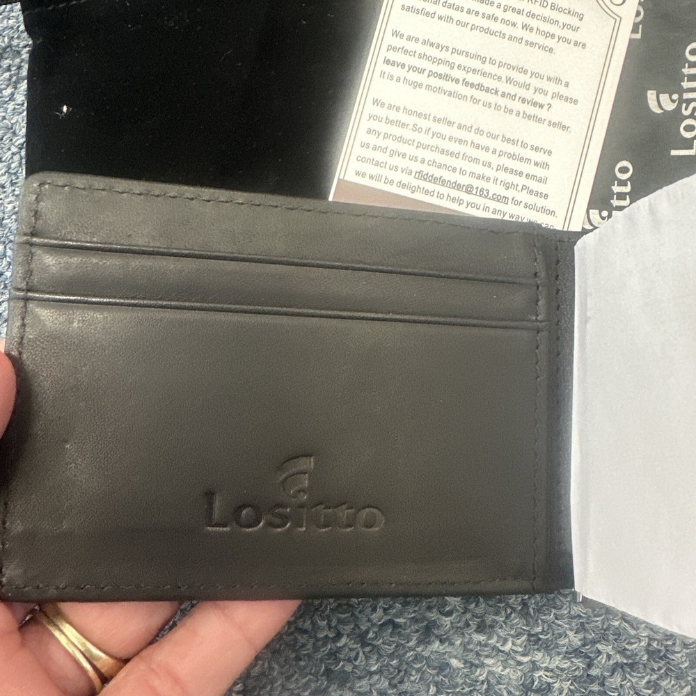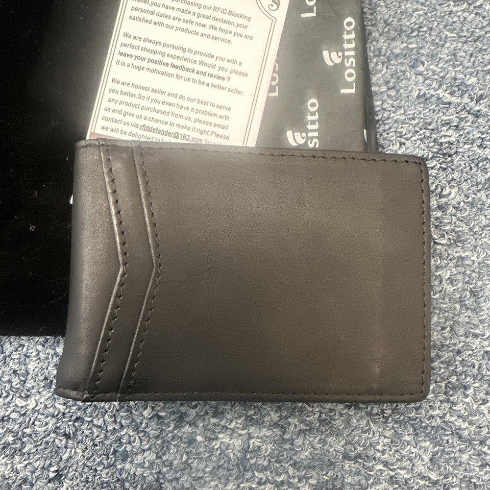 This Lositto bifold wallet is the perfect accessory for any stylish man. Crafted from high-quality black leather, this wallet features a sleek and sophisticated design that is sure to impress. The wallet is perfect for everyday use, with plenty of room for cards, cash, and other essentials. The Lositto brand is known for its commitment to quality and this wallet is no exception. The bifold design offers a classic look that is both timeless and versatile. Whether you're heading to work or out on the town, this wallet has everything you need to look and feel your best.