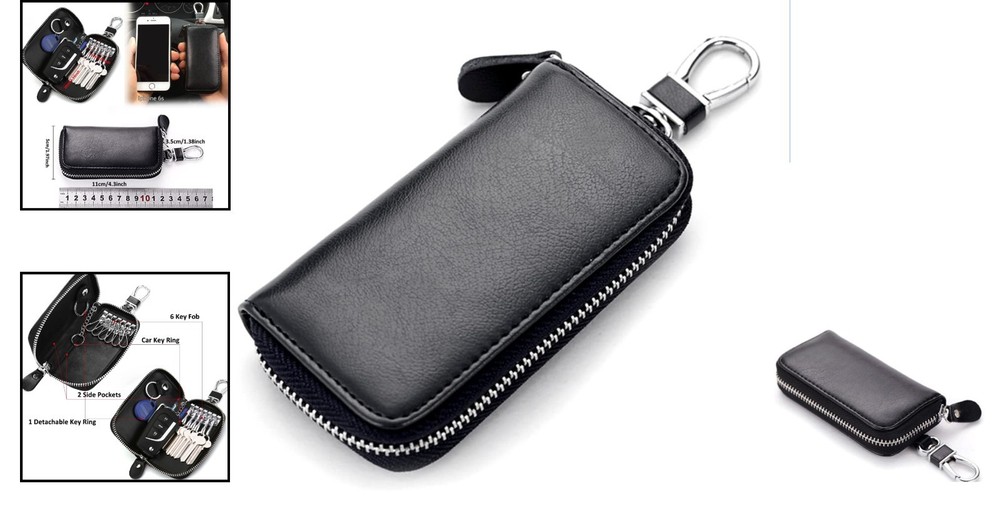 Elegant Leather Key Organizer with 6 Hooks and Secure Zipper - Unisex Design ‹ › ‹ › ‹ › ‹ › ‹ › ‹ › ‹ › ‹ › ‹ › ‹ › ‹ › Elegant Leather Key Organizer Introducing our sophisticated Leather Key Organizer, meticulously crafted for those who cherish elegance and functionality. This unisex design marries style with utility, making it the perfect accessory for both men and women. Key Features: Made from soft cowhide leather, exuding luxury and durability. High-quality silver metal buckle enhances security while adding a touch of sophistication. Superior stitching ensures this key wallet stands the of time, providing you with lasting elegance. Holds up to 6 keys and includes 1 split key ring for easy access to your cards. Features a dedicated buckle for car keys and slip-in pocket slots for cards, notes, and receipts. Innovative hanging style with a large hook for effortless attachment to your trousers for on-the-go convenience. Sturdy zipper guarantees that your items remain secure, while being easily accessible. Measuring approximately 4.3" (H) x 2.4" (W) and weighing just 108g (3.8 oz), it's compact and lightweight for utmost portability. Why Choose This Key Organizer? This elegant Leather Key Organizer is not just a functional item; it’s a statement of your lifestyle. No longer will you experience the frustration of tangled keys or scratched belongings. With this exquisite wallet, every detail is perfected to ensure your keys are organized and at your fingertips. As a thoughtful gift for yourself or a loved one, it speaks volumes of care and attention to quality. Elevate your daily routine with our Elegant Leather Key Organizer today! Shipping Free & Fast Shipping - We offer free shipping to most of the USA with a normal delivery time of 3-7 days. However, due to the current situation, additional delivery time (up to 3 weeks) may be required for some items. Alternative Carriers - We may use alternative carriers (e.g. USPS, FedEx, UPS, etc.) to ensure your package arrives safely and on time. Due to the use of multiple carriers, we are unable to provide a tracking number automatically. Handling Time - Orders are processed and shipped within 1-2 business days of receiving cleared payment. Shipping Restrictions - Shipping to Alaska, Hawaii, Puerto Rico, Guam, and other US territories may incur shipping charges or delivery restrictions. Please contact us before ordering, or your order can be refunded/cancelled. State Restrictions - There may be restrictions based on your state of purchase. For example, certain items may not be shipped to California due to state regulations. Contact for Tracking Updates - If you require tracking updates or have any concerns about the delivery of your order, please feel free to contact us, and we will be happy to assist you. Return 30-Day Hassle-Free Returns - We want you to be completely satisfied with your purchase. If you are not, you can return the item within 30 days of receiving it for a full refund or exchange. Easy Return Process - To start a return, simply contact us and we will provide you with a prepaid return shipping label and detailed instructions. Restocking Fee - There are no restocking fees for returns. However, the buyer is responsible for return shipping costs if the return is not due to a seller's error. Refund Processing Time - Refunds will be processed within 5 business days of receiving the returned item in its condition. Payment We accept all major credit cards, PayPal, and Apple Pay for your convenience. Your payment information is secure and encrypted to ensure a safe and seamless transaction. Please complete your payment within 3 days of purchase to avoid any delays in shipping. Feedback Your feedback is extremely important to us. We strive to provide the best products and customer service possible. If you are satisfied with your purchase, please take a moment to leave us a positive review. If you have any concerns or issues with your order, please contact us before leaving negative feedback. We are committed to resolving any problems and ensuring your satisfaction. Contact Us If you have any questions or concerns, please feel free to out to our customer support team. You can contact us through the eBay messaging system. We are available Monday to Friday, 9:00 am to 5:00 pm EST, and we will do our best to respond to your inquiry within 24 hours. Buy it now and enjoy a pleasant shopping experience! Material: Leather,Soft cowhide leather Character: Leather Keychain Case Character Family: Leather Keychain Case Theme: Leather Keychain Case Accents: Buckle,Zipper Type: Key Holder Color: Black Size: One Size Number of Pieces: 1 Piece