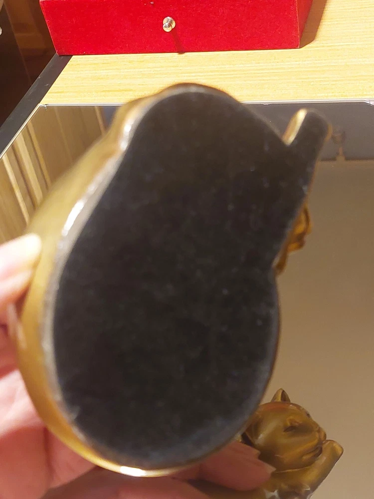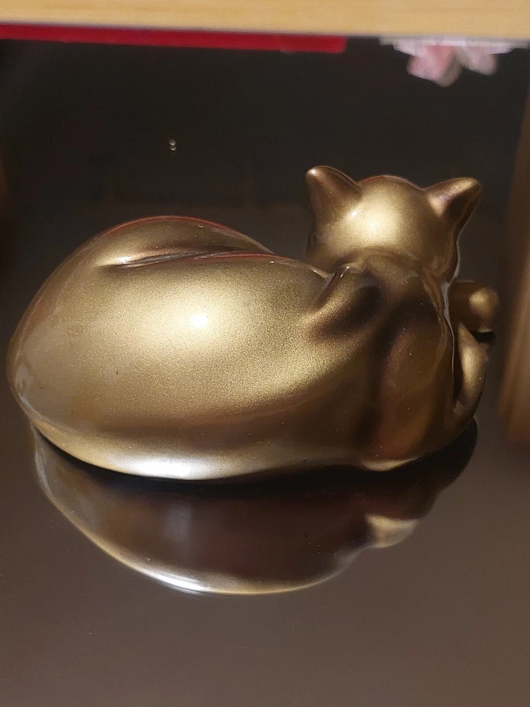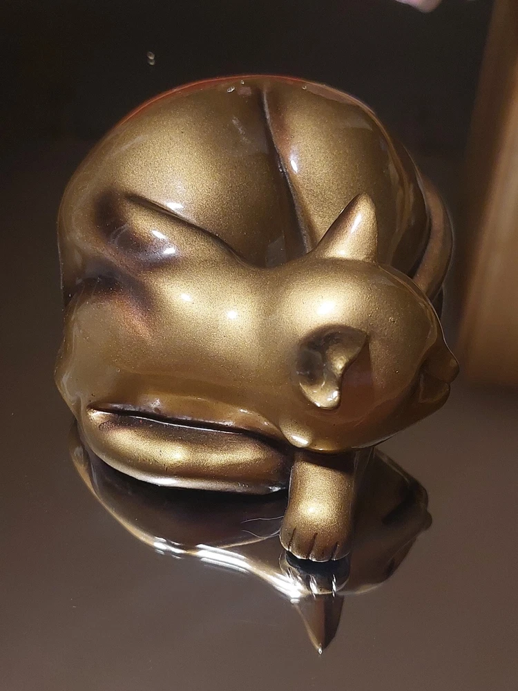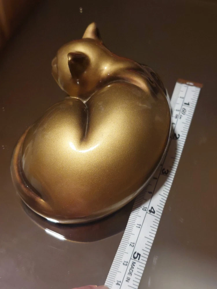 Sleeping Cat Figurine Paperweight Gold Tone Matte Finish Felt Bottom Apprx 5"