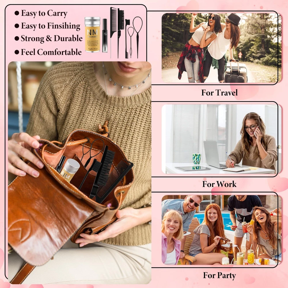 Slick Back Hair Brush Wax Stick Set for Flyaways Hair Accessories for Women Girl Teen Girls Trendy Stuff, Hair Styling Tools Baby Hair Gel, Christmas/Birthday Gifts Stocking Stuffers for Women Kids 【Hair Styling Products Set】The 6pcs hair slick stick set includes a hair wax stick, edge brush, rat tail comb, combing brush, a large and small braid ponytail maker, easily design a variety of fashionable hairstyles. 【Versatile Usage Scenarios】The hair wax stick and comb kit are both small and light, as easy as carrying cosmetics, just put them in your backpack. Whether daily styling, work meetings, travel outdoor, dance competitions, you can style your hair anytime. 【Great Hair Accessories For Girls, Women, Kids】Our hair wax stick set is a premium hair styling tools products specially made for girls, women and kids.The 3 matching hair brushs and ponytail maker can be used with hair wax stick to bring better results. 【High Quality Material & Usage】Hair stick wax is made of pure mild & healthy materials, hair brush set is made of healthy & sturdy materials, not easy to break or deform. When using, push a small amount of wax from the bottom, apply it to your hair, and then comb your hair with a comb. You can also apply the wax on your palms and use your hands to create the desired hairstyle. 【Great Gift Choice】In the coming Christmas, our hair wax stick set can be used as a stocking stuffers for women kids. Of course, it can also be used as a birthday gifts for girls, which is a trendy stuff for teen girls. Shipping We offer FREE shipping on all orders! We ship within Three business days of payment, usually sooner. We use a selection of shipping services such as UPS, FedEx, USPS etc. We only ship to the lower 48 states, no APO/FPO addresses or PO Boxes allowed. Local pickups and combined shipping options are not provided at this time. Return You can return a product for up to 30 days from the date you purchased it. Any product you return must be in the same condition you received it and in the original packaging. Please keep the receipt. Payment We accept payment by any of the following methods: PayPal Please pay as soon as possible after winning an auction, as that will allow us to post your item to you sooner! Feedback Customer satisfaction is very important to us. If you have any problem with your order, please contact us and we will do our best to make you satisfied. Contact Us If you have any queries, please contact us via ebay. We usually respond within 24 hours on weekdays. Please visit our eBay store to check out other items for sale! Thank you for shopping at our store.